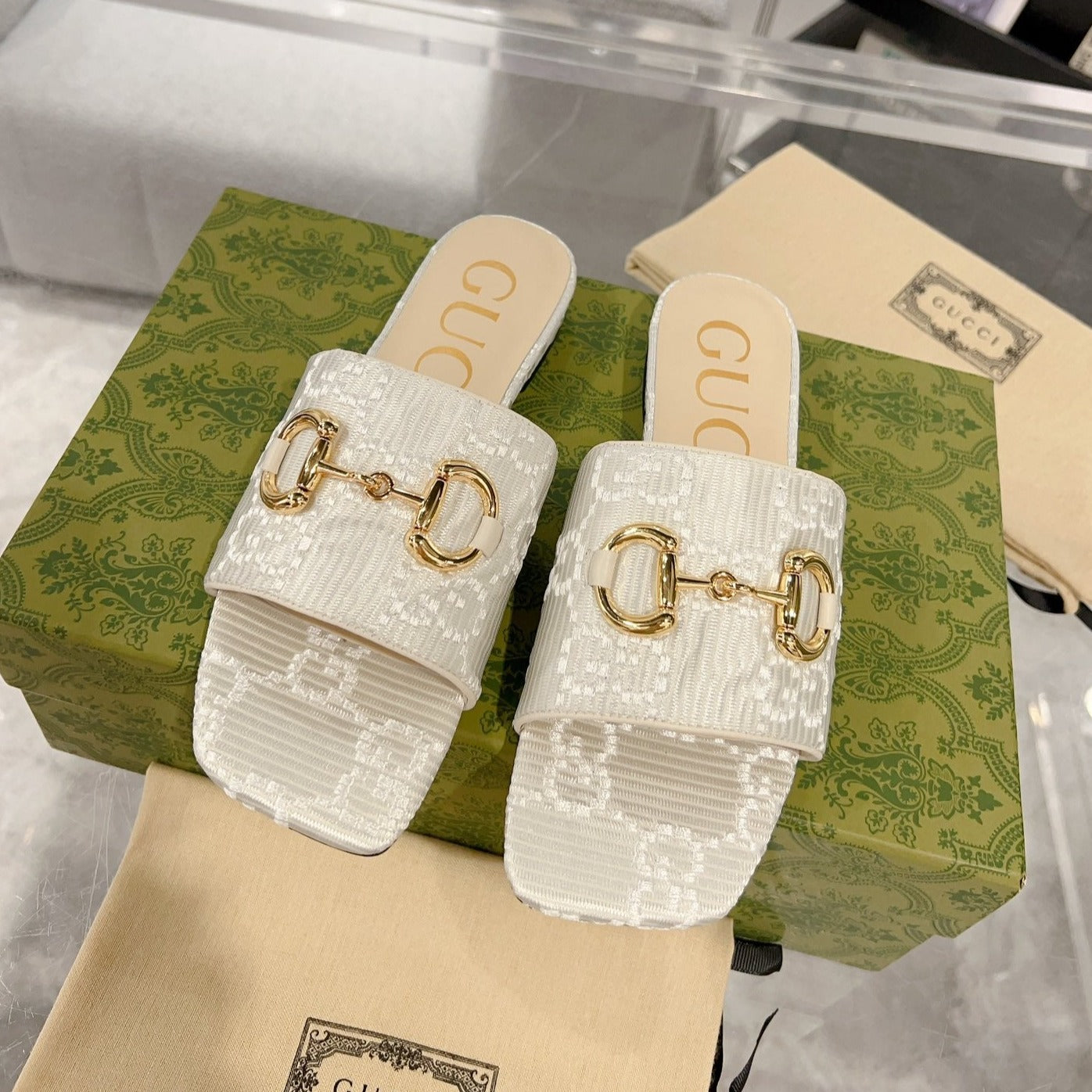 GG CHUNKY SLIDE SANDAL SILVER CALFSKIN