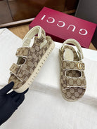 GG CLASSIC SANDALS 25S IN BEIGE FABRIC WITH GOLD HARDWARE