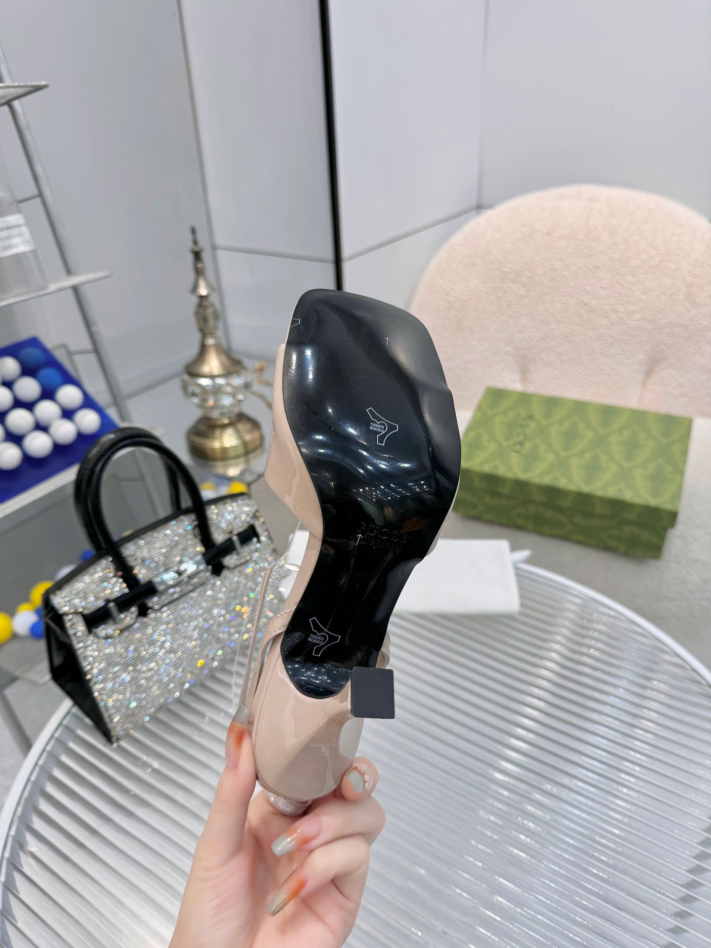 GG Gold Buckle Sandal 80mm Beige Patent Leather 457557