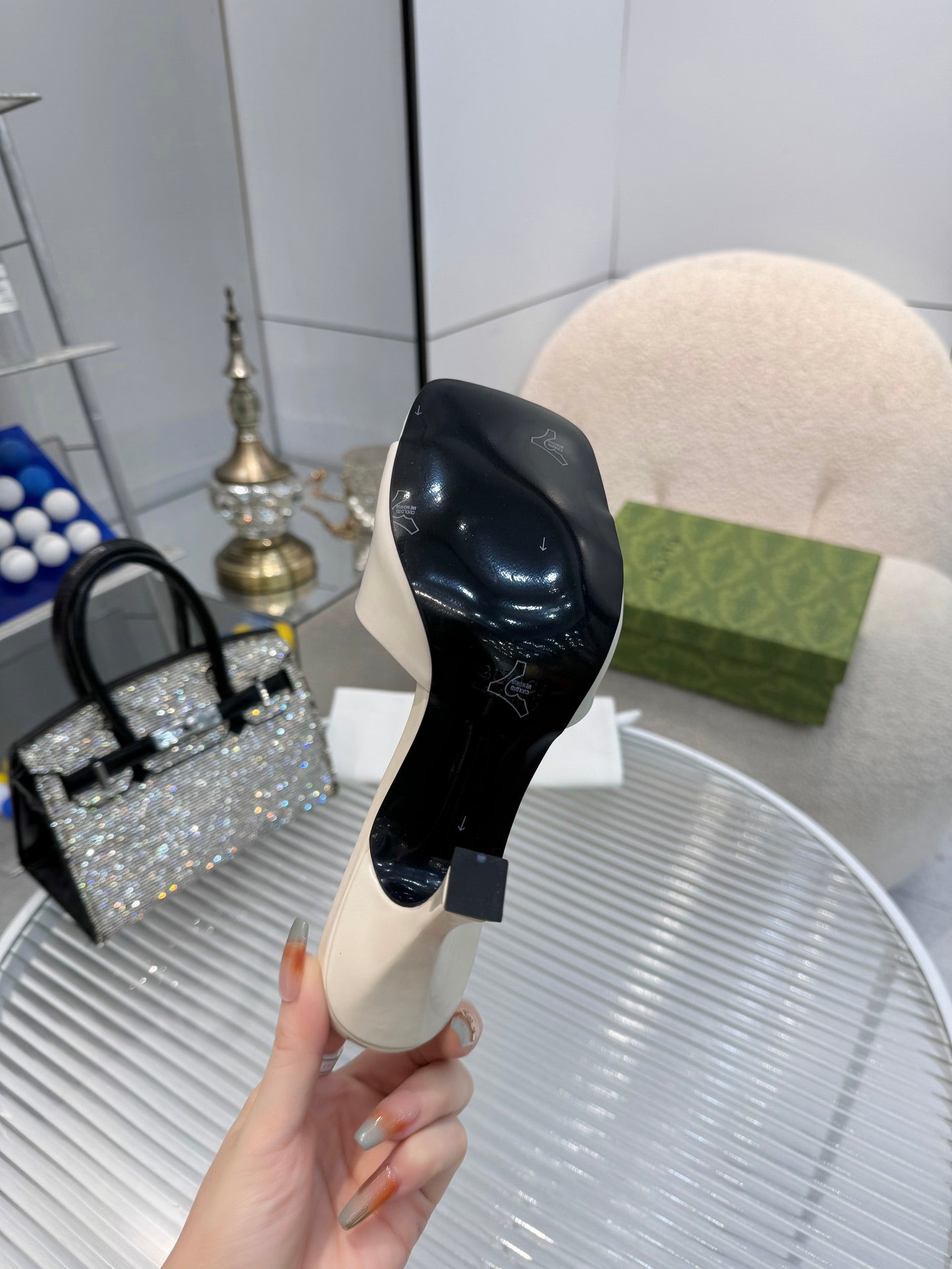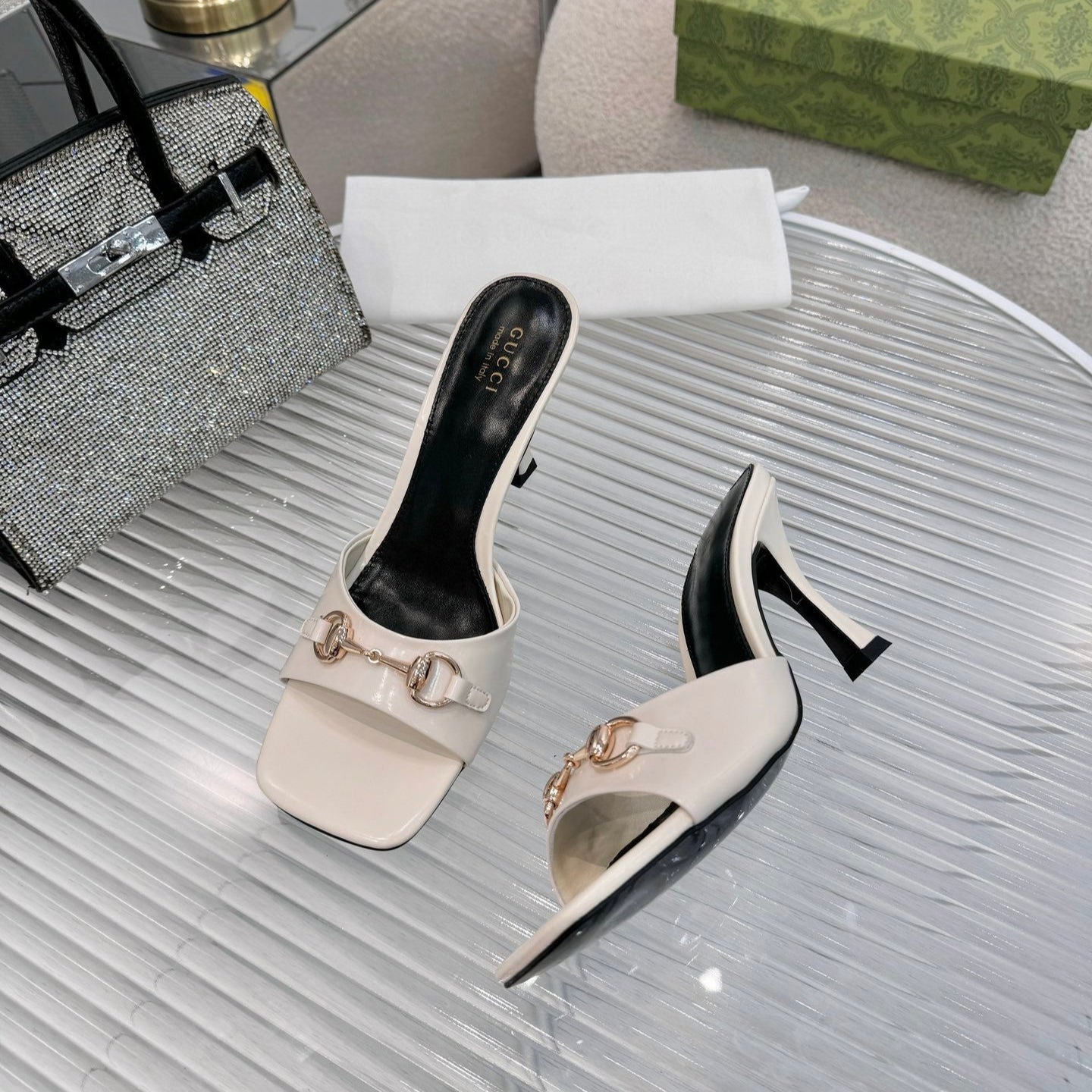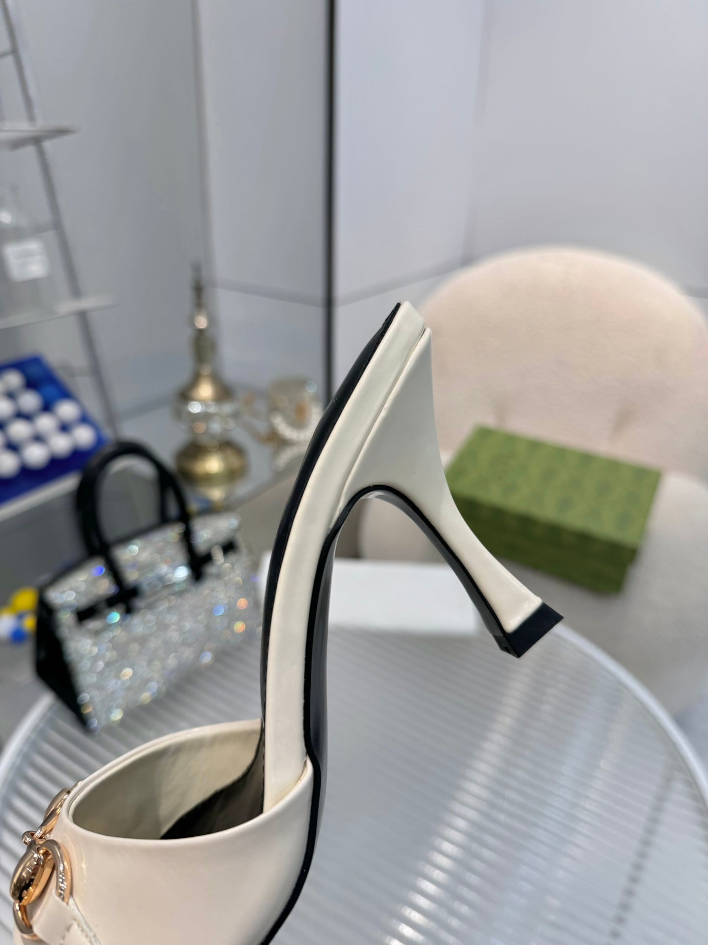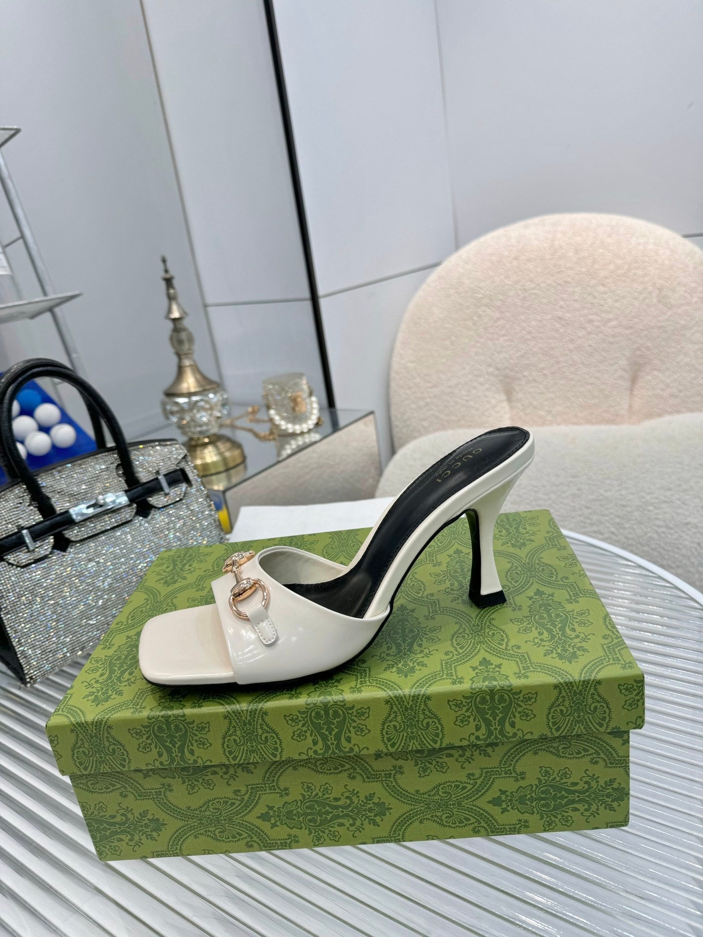 GG Gold Buckle Slide Sandal 80mm White Patent Leather 457562