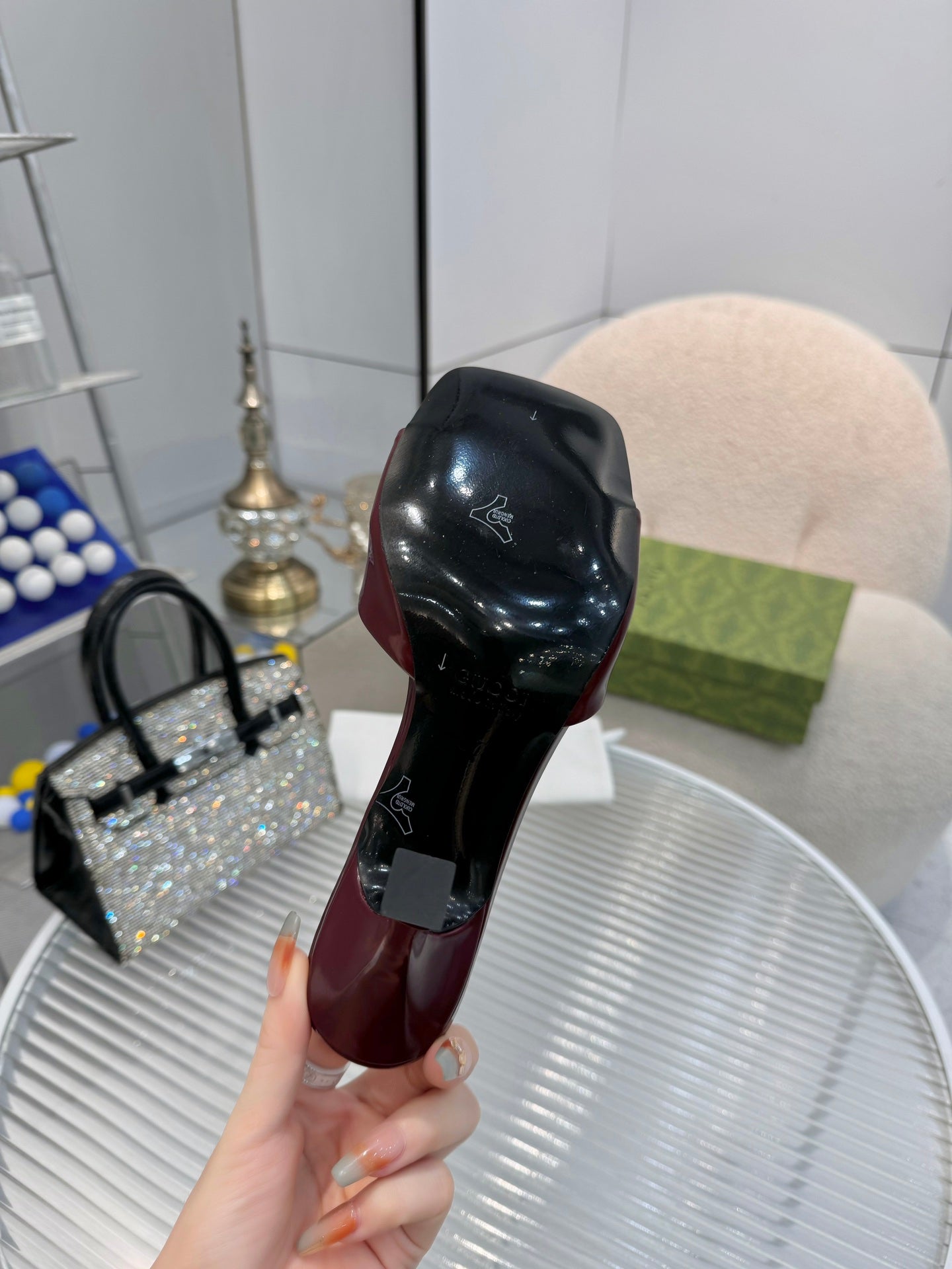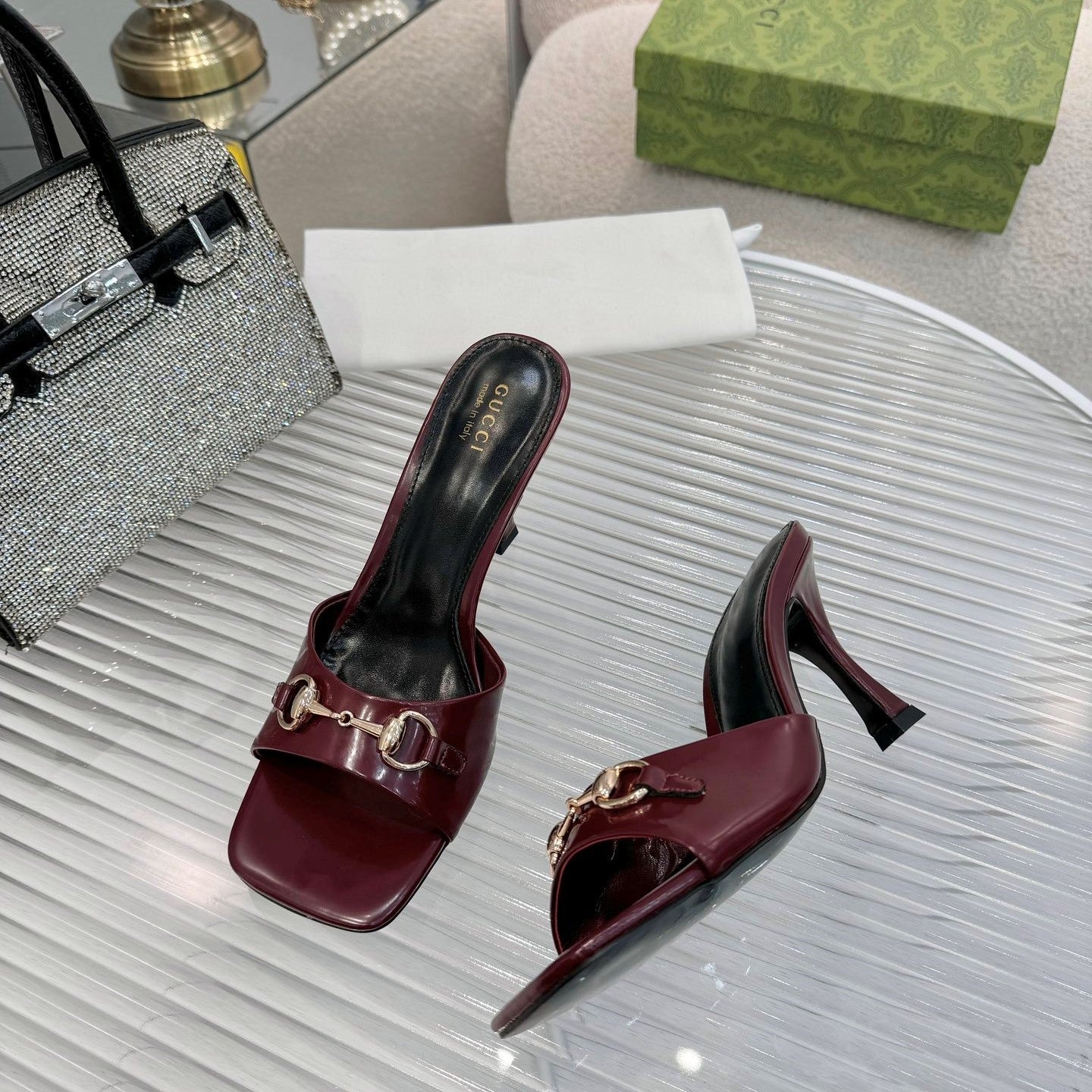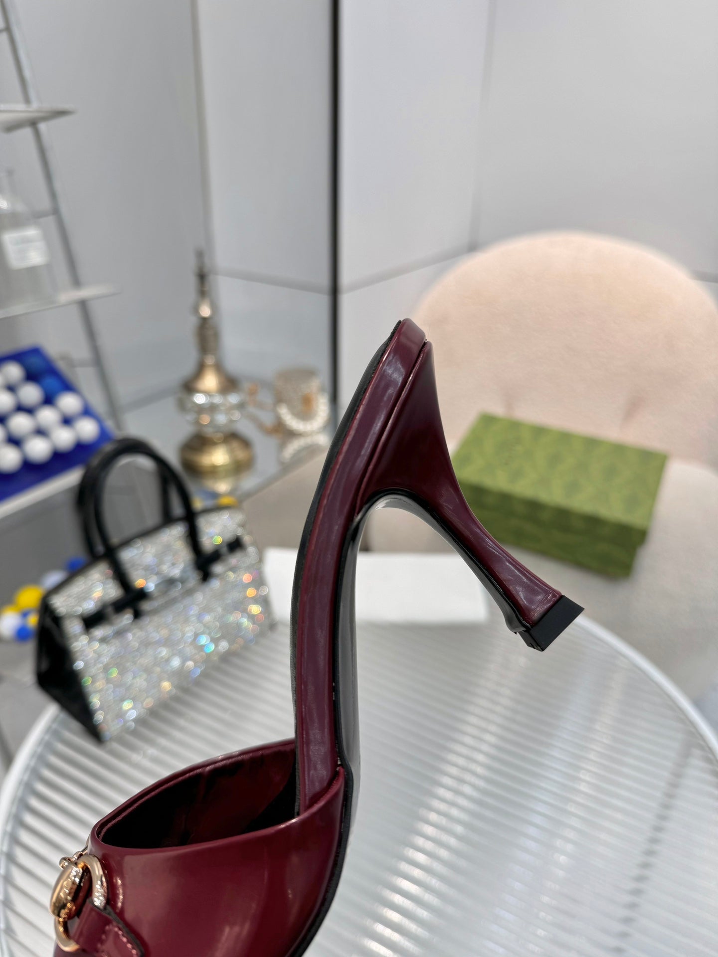 GG Gold Buckle Slide Sandal 80mm Burgundy Patent Leather 457566
