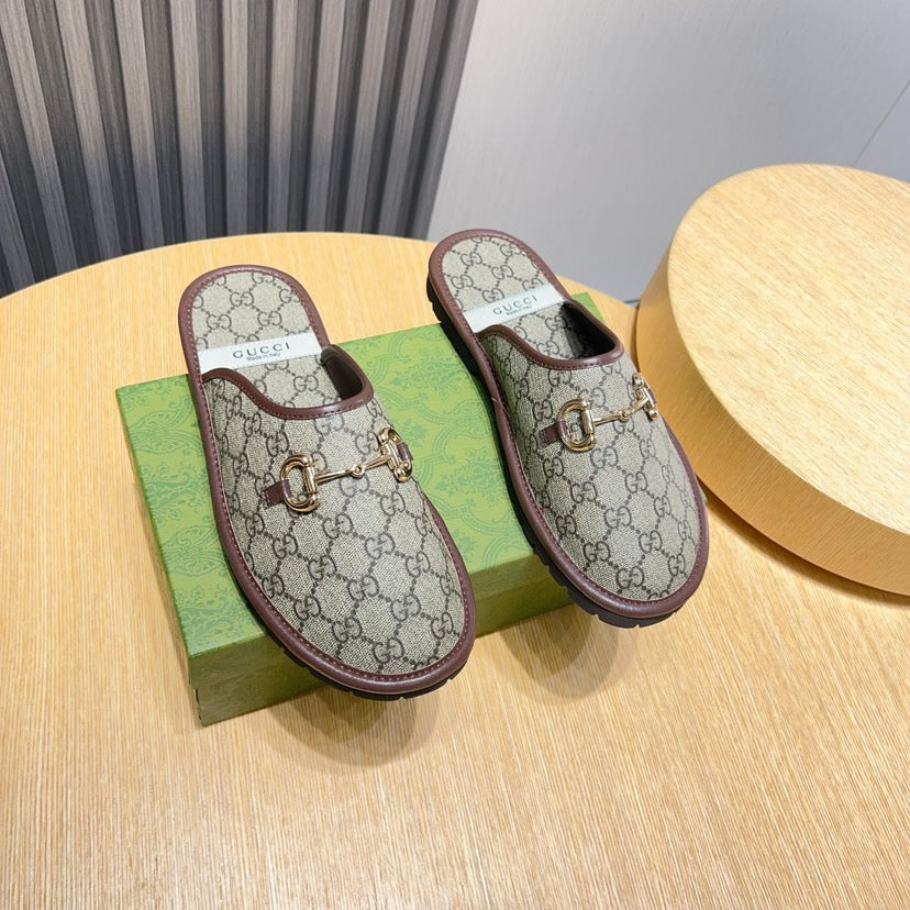 GG Men's Mule Brown Printed Fabric 544373