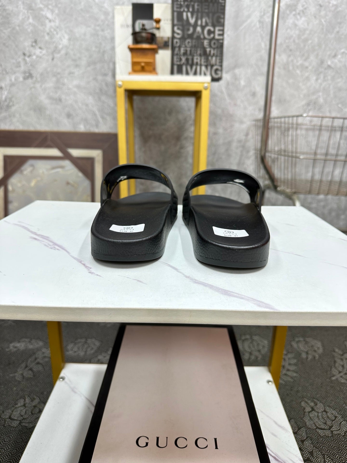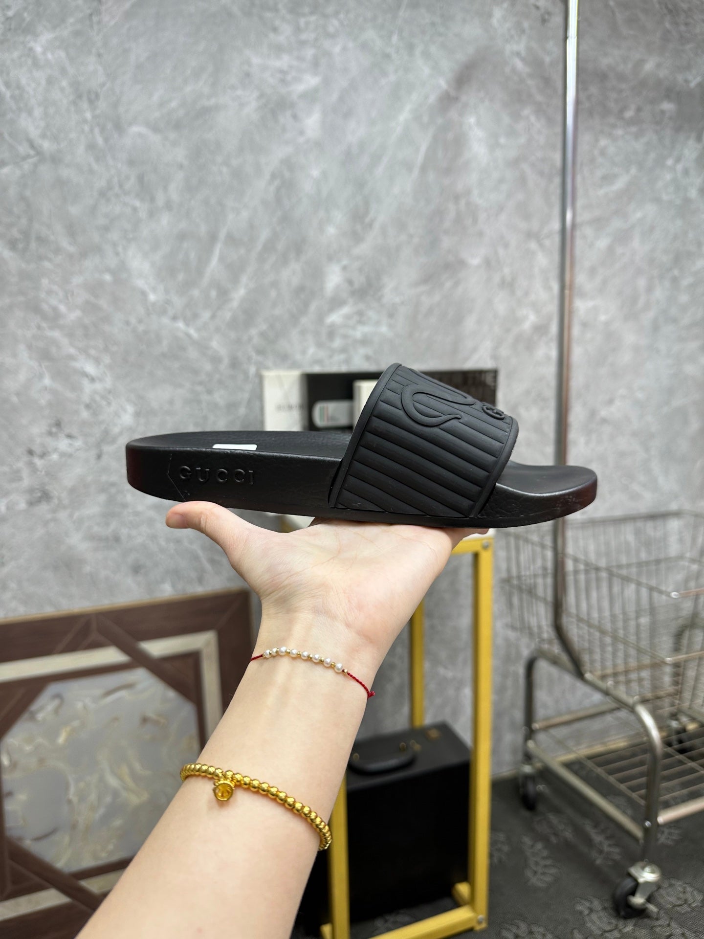GG Men's Slide Black Sheepskin Rubber 540099