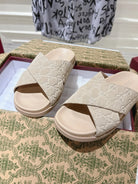 GG SLIDES IN NUDE BEIGE SUEDE WITH EMBOSSED LOGO STYLE 7