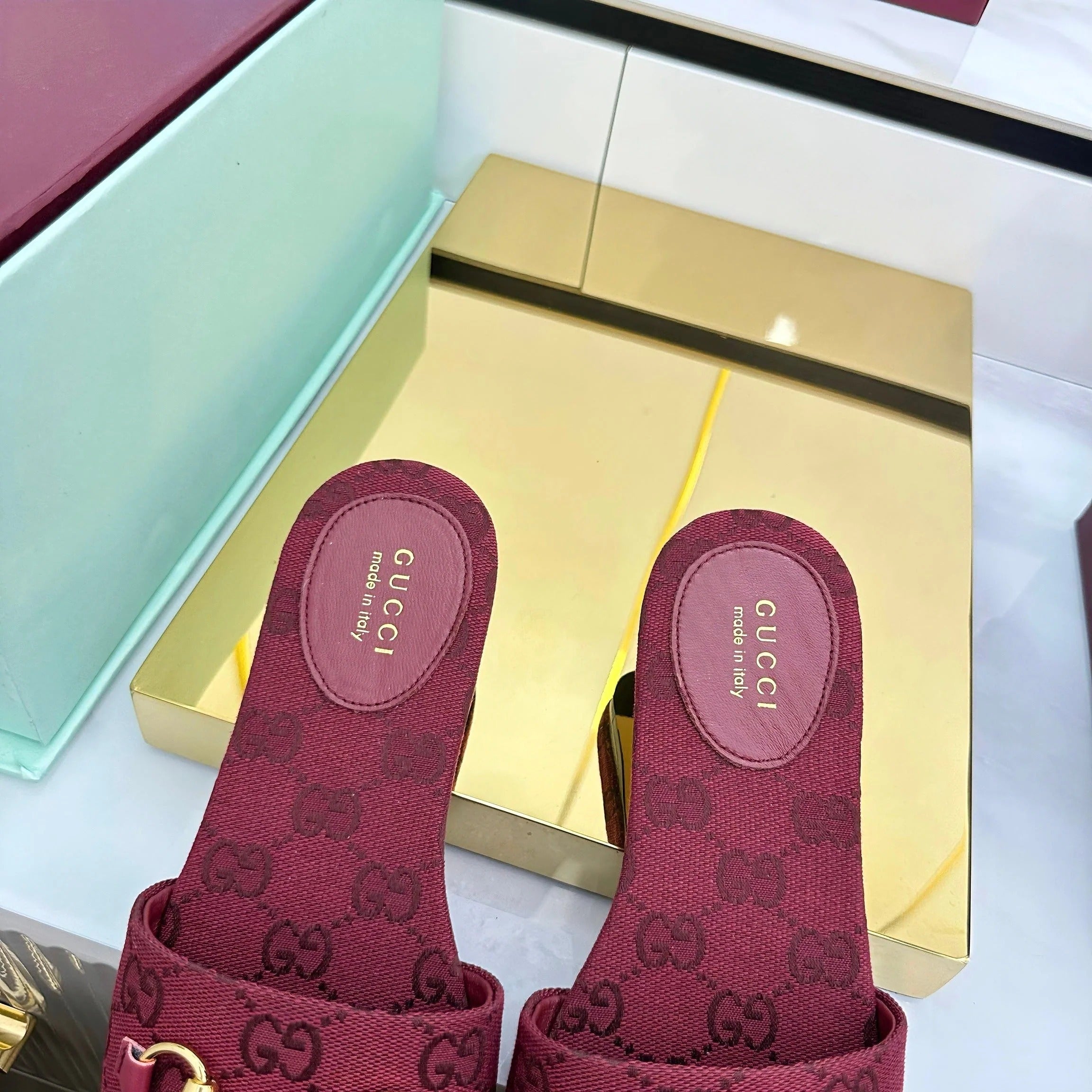 GG SLIDES IN RED WITH GOLD HARDWARE