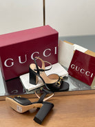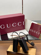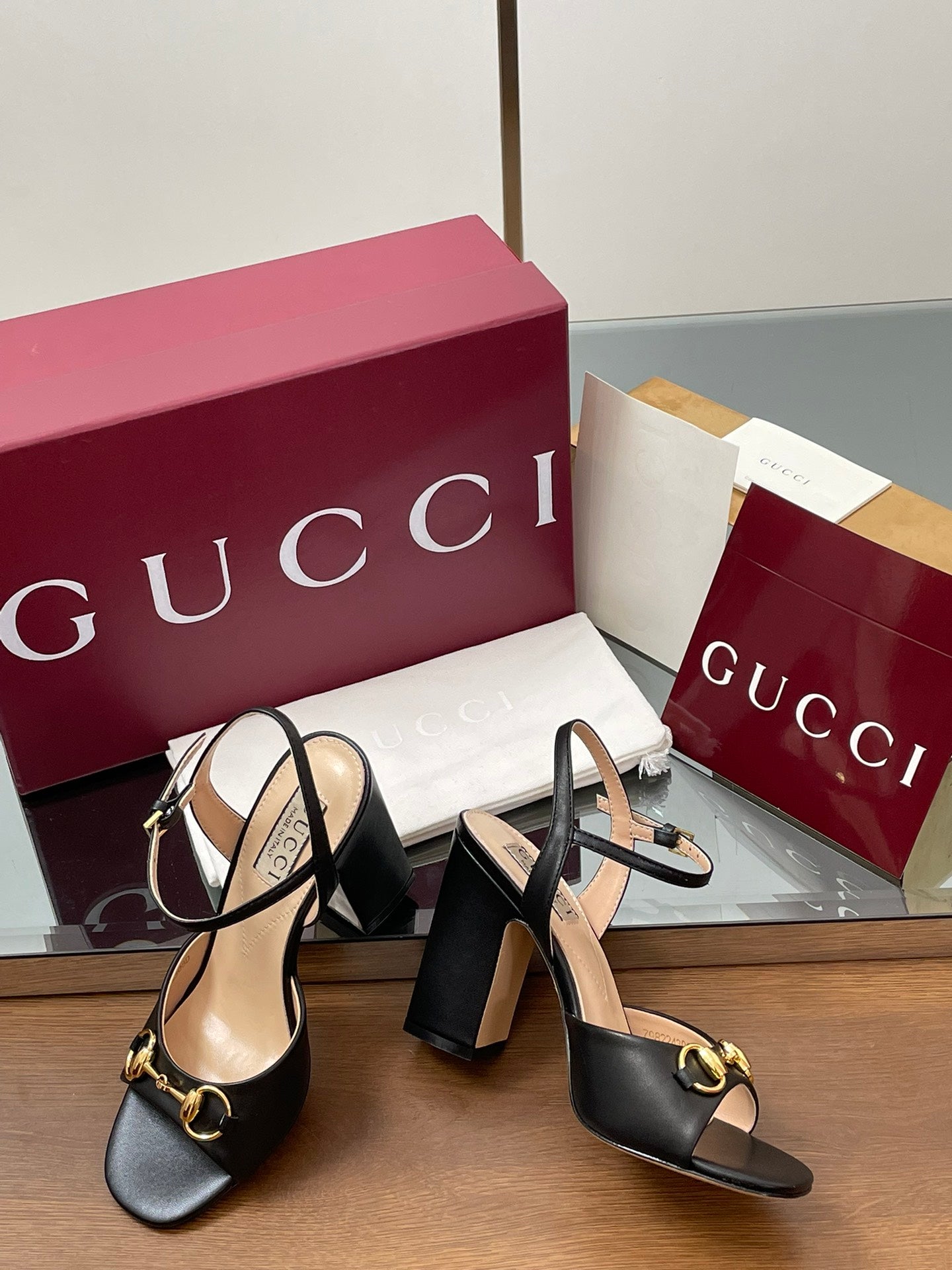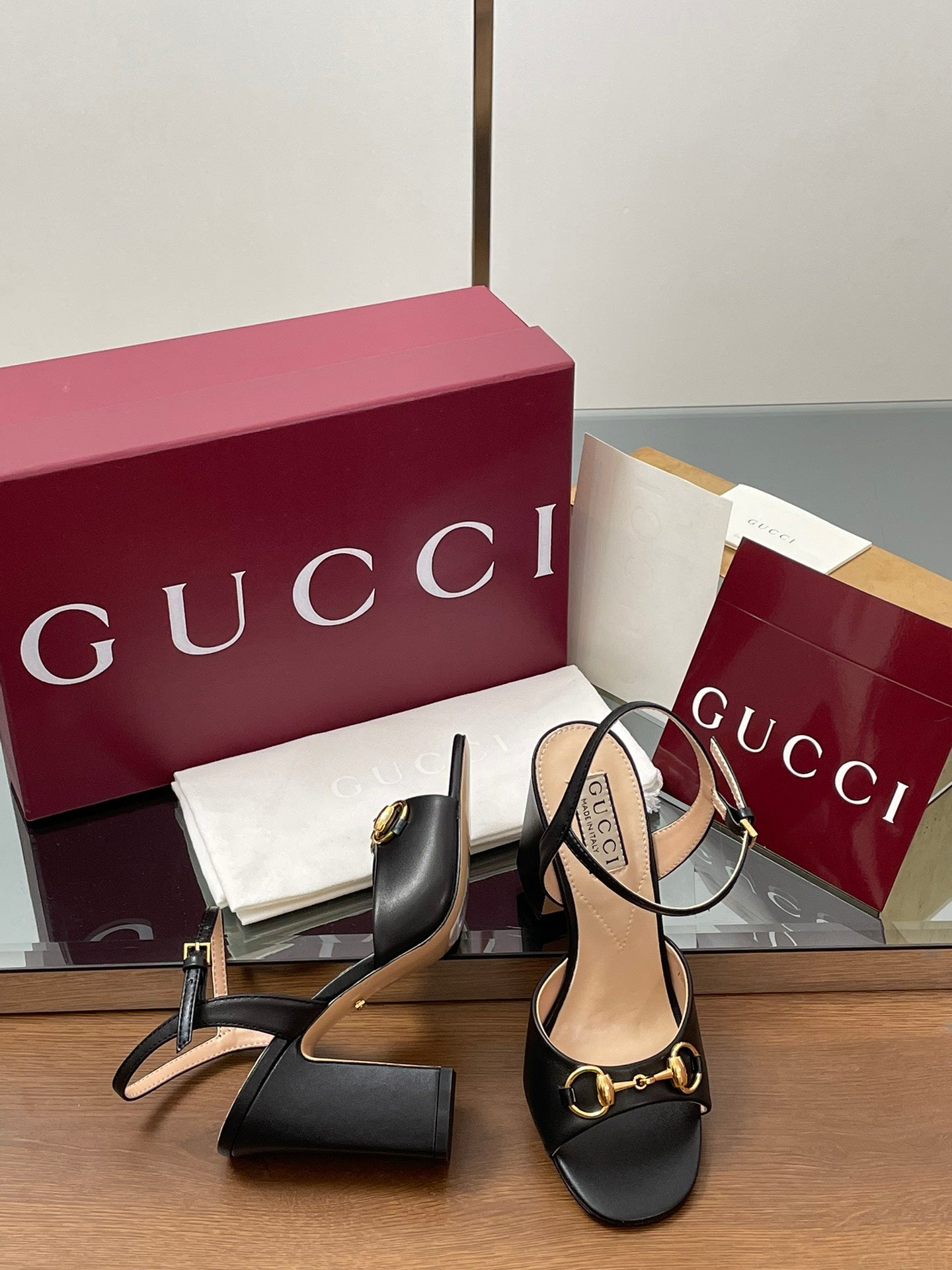 GG Women Horsebit High Heel Sandal Open Toe Black Sheepskin 225967