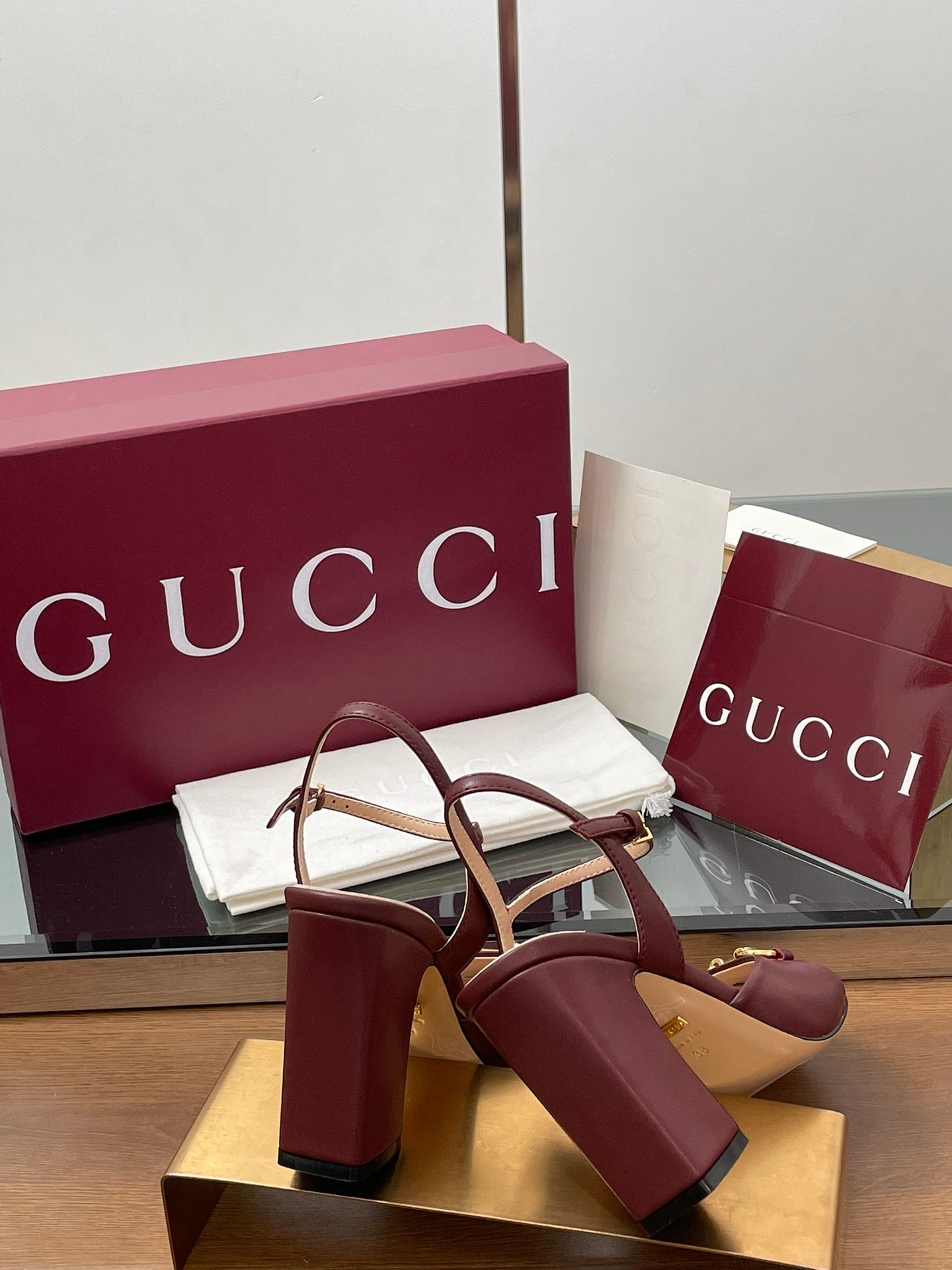 GG Women Horsebit High Heel Sandal Open Toe Burgundy Sheepskin 225968
