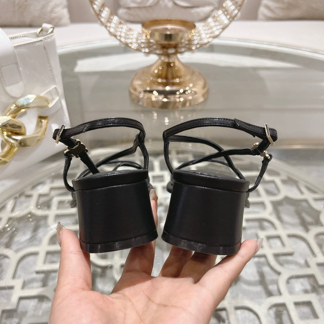 HIGH SANDAL 45MM IN BLACK LAMBSKIN