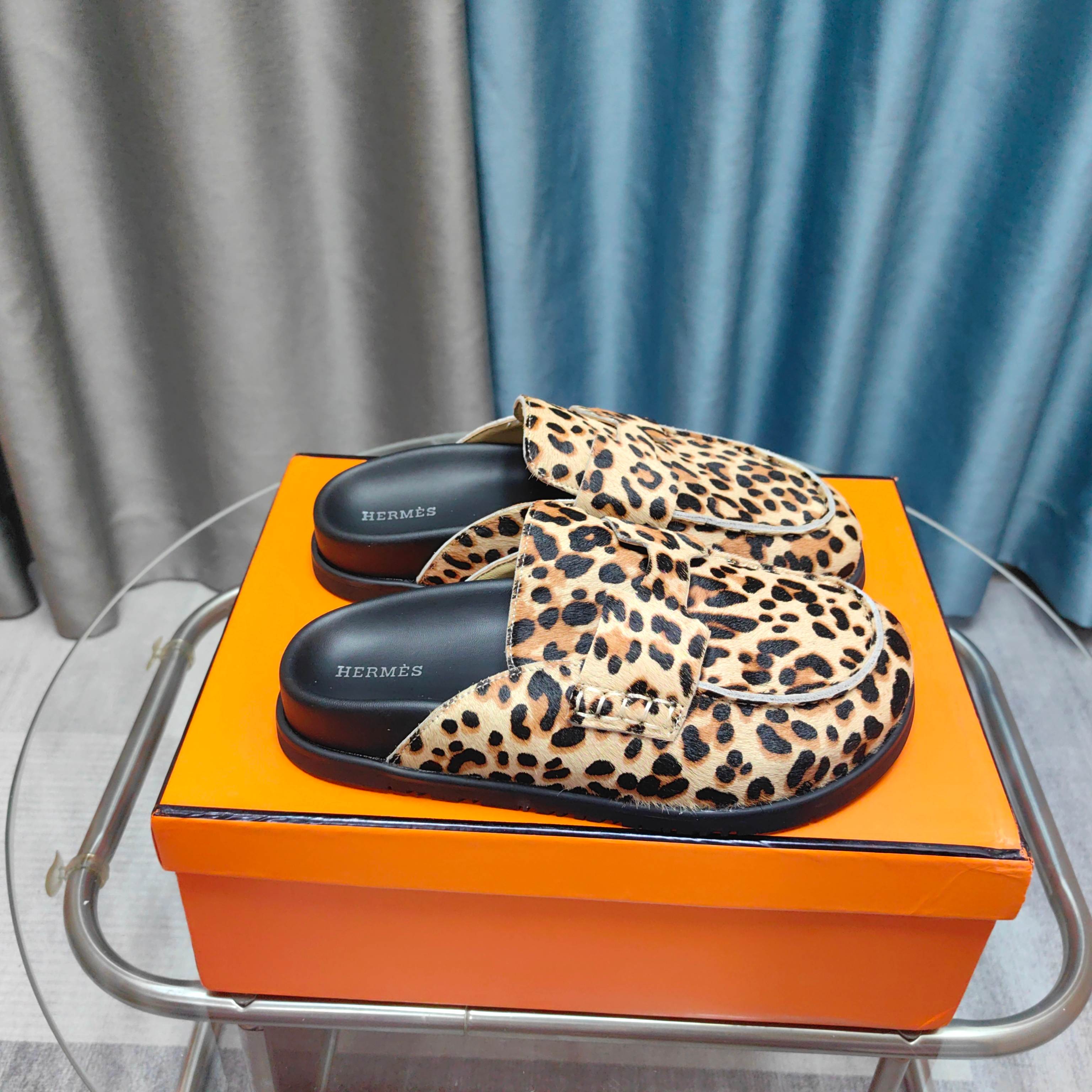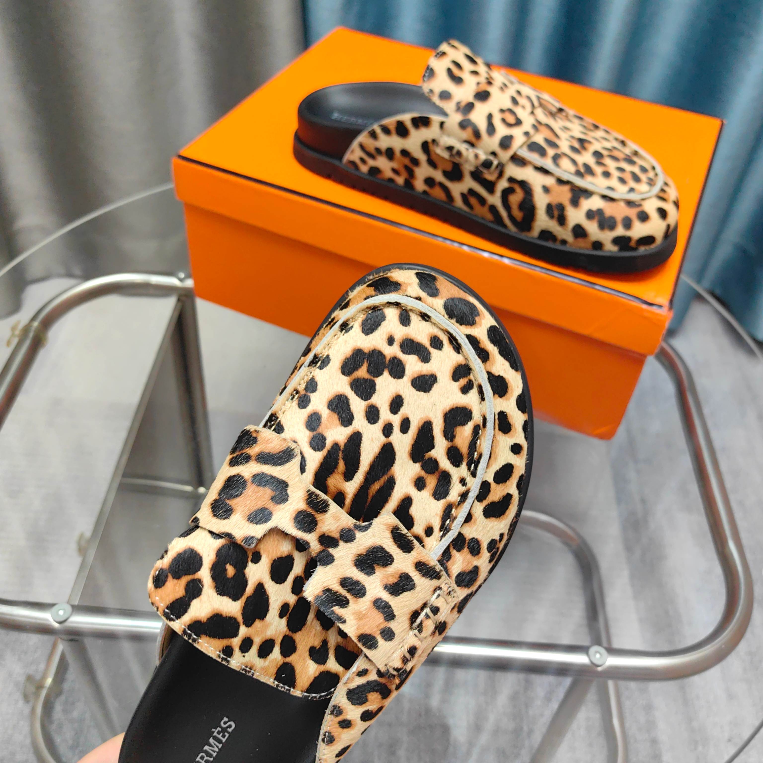 HM 25 Go Mule Light Leopark Horsehair Fabric 369355