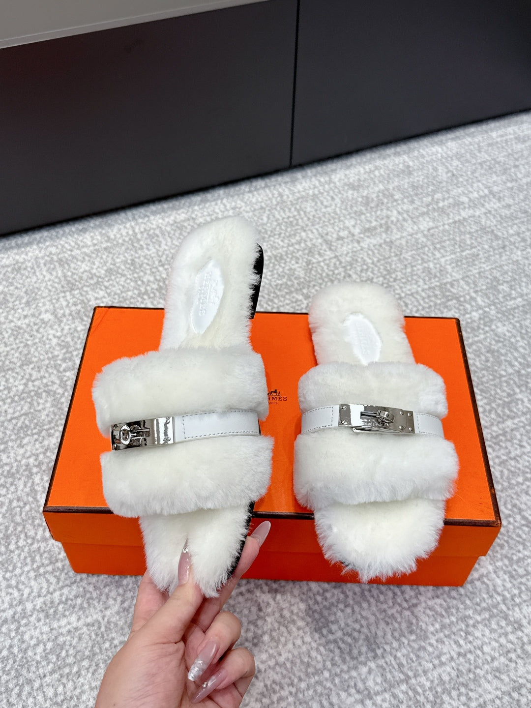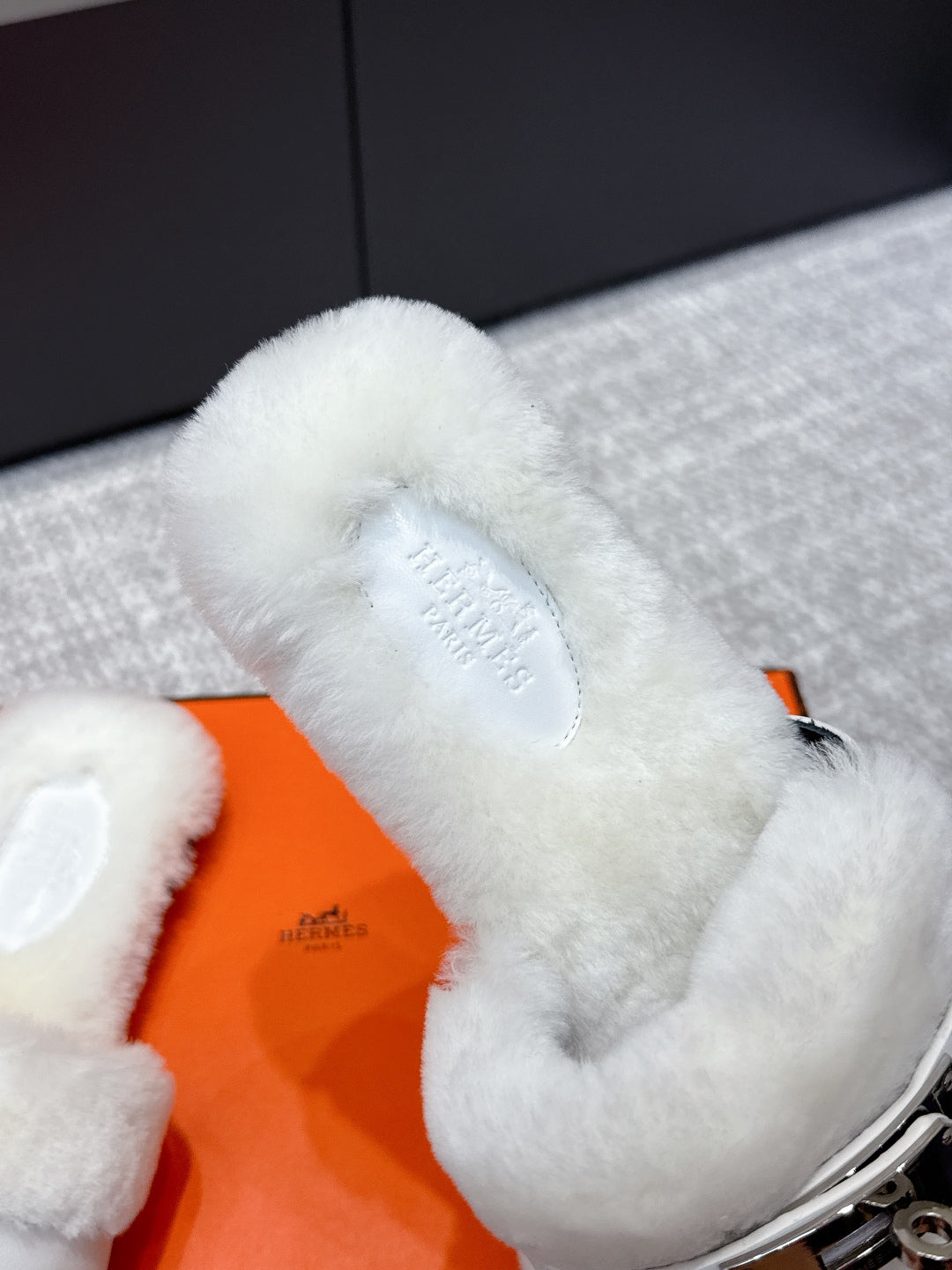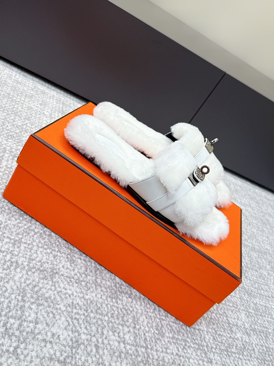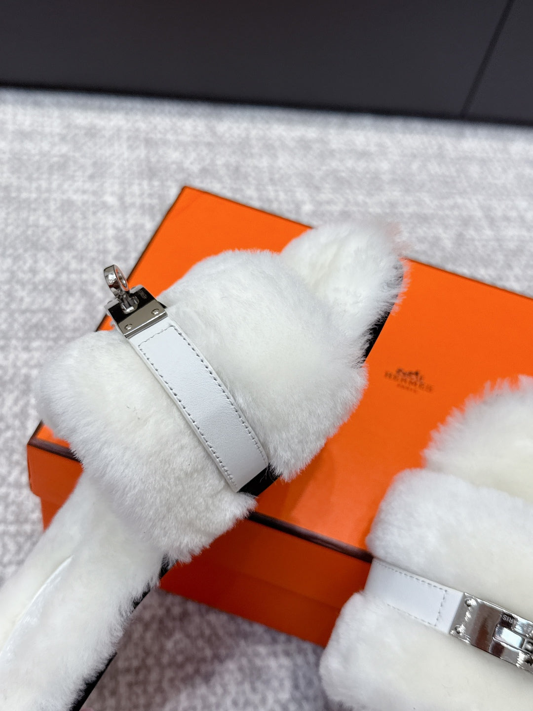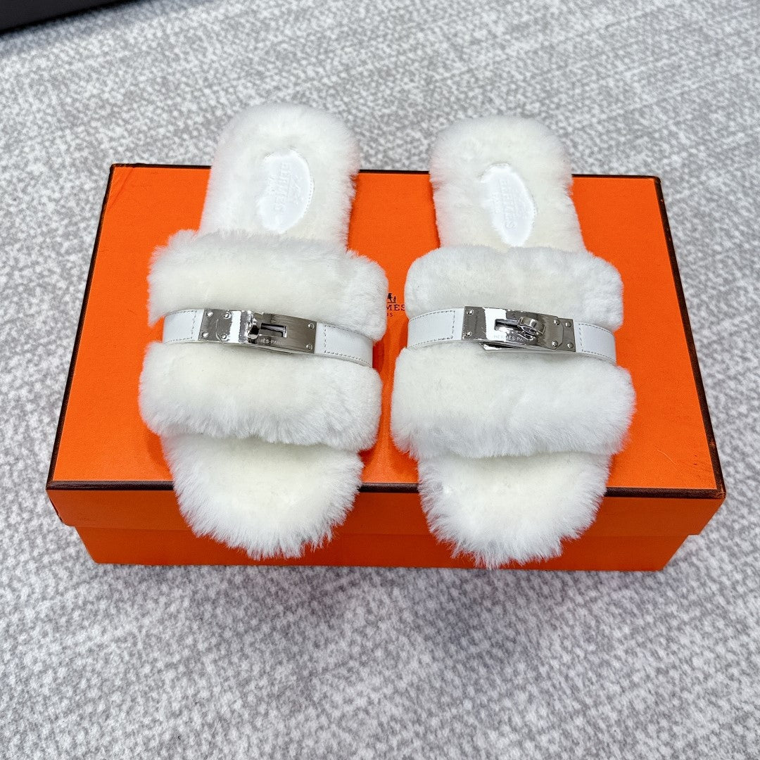 HM 25s Slipper with Buckle White Fur 462202