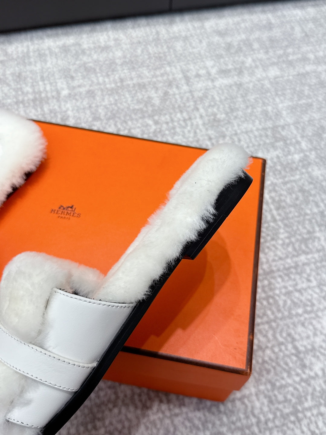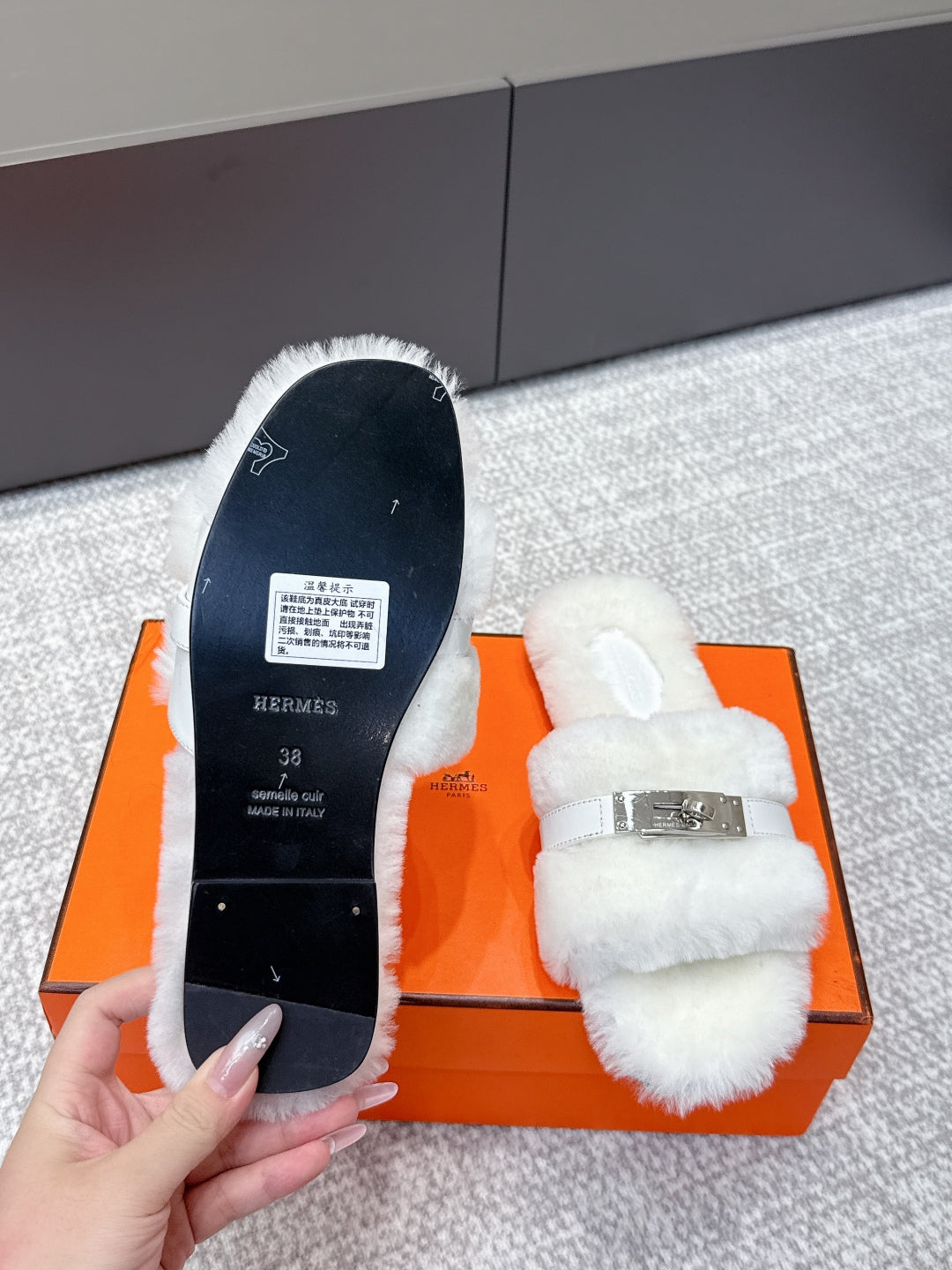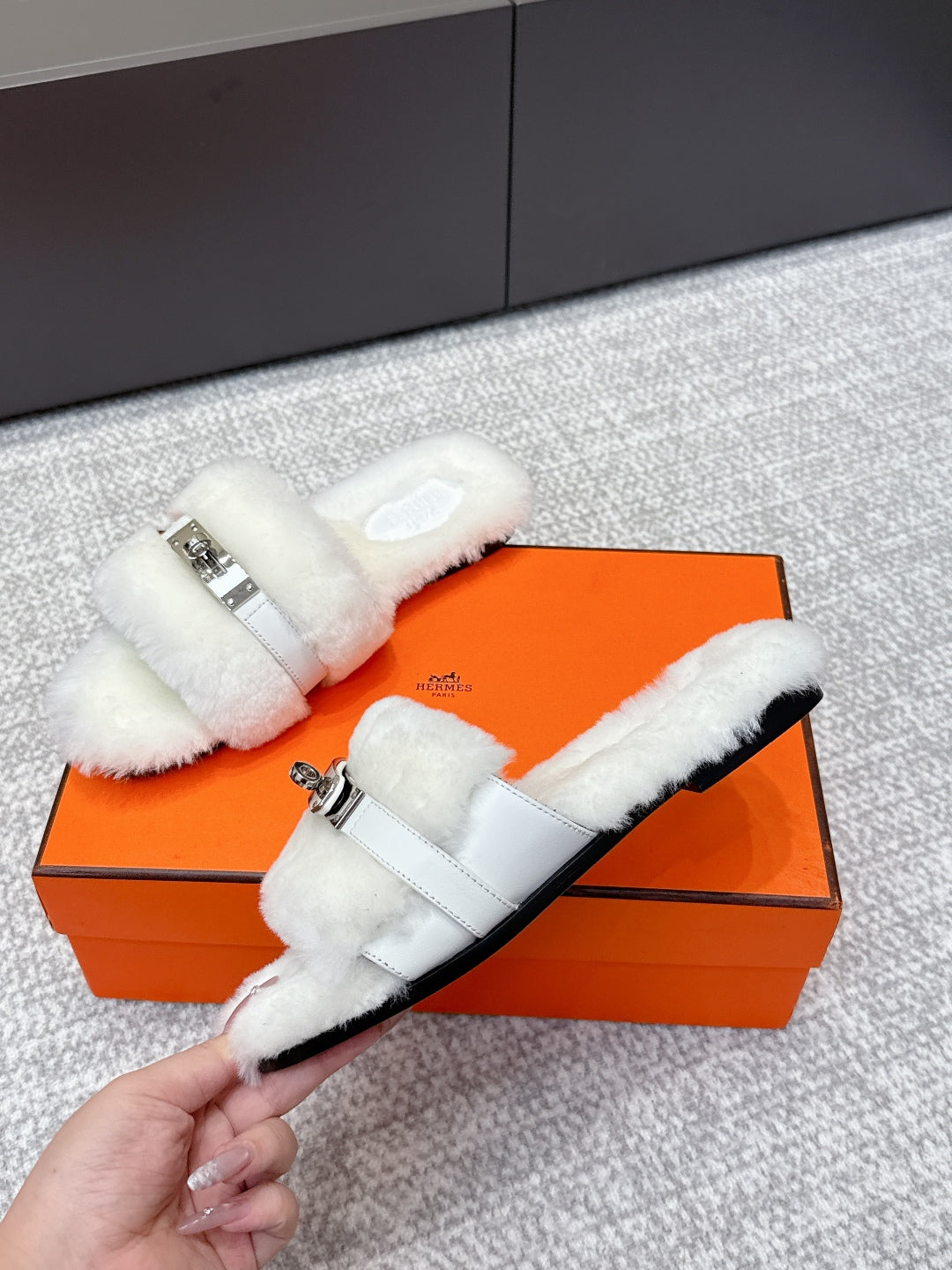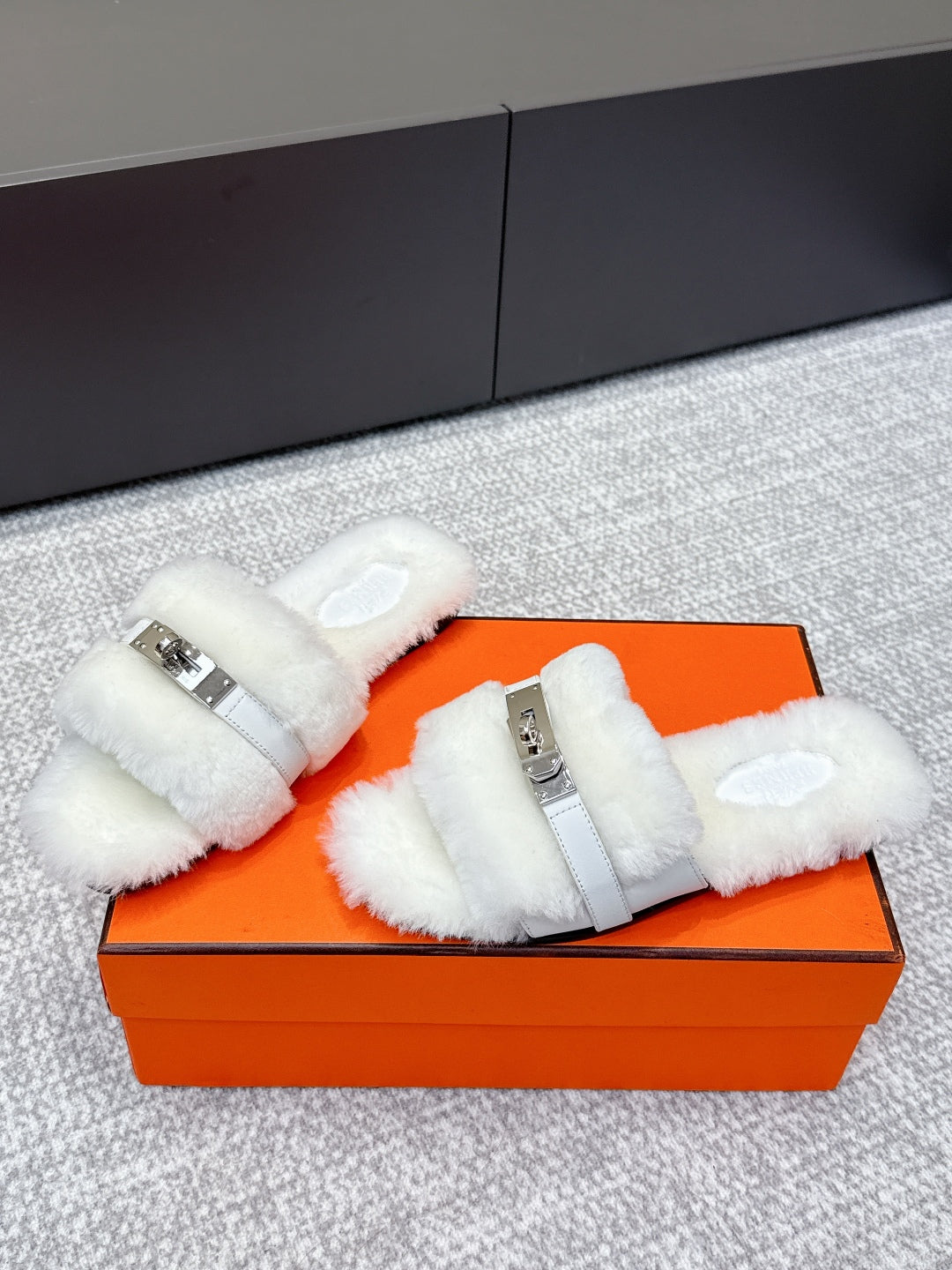 HM 25s Slipper with Buckle White Fur 462202