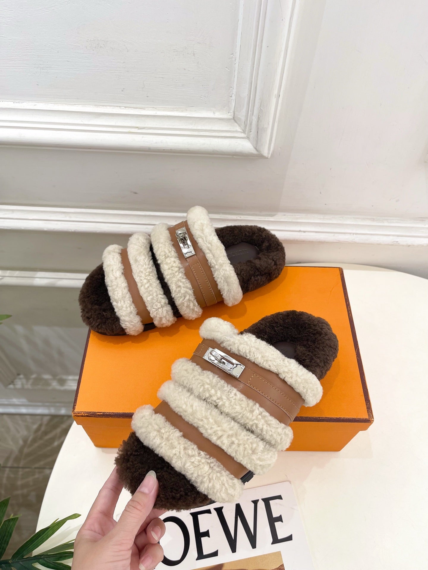 HM Slippers Classic Kelly Sliver Buckle Brown Wool 479617