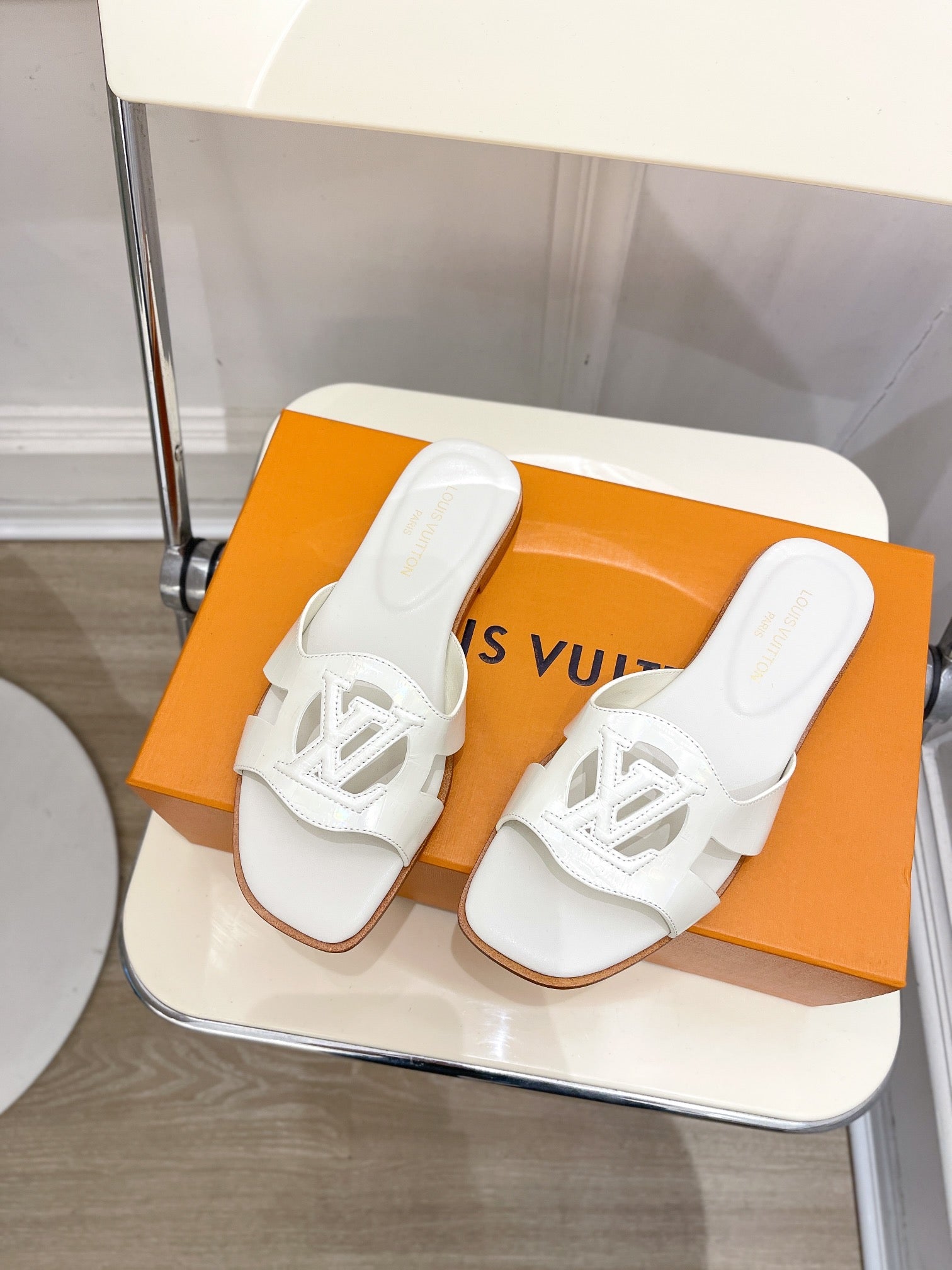 isola flat mule white calfskin
