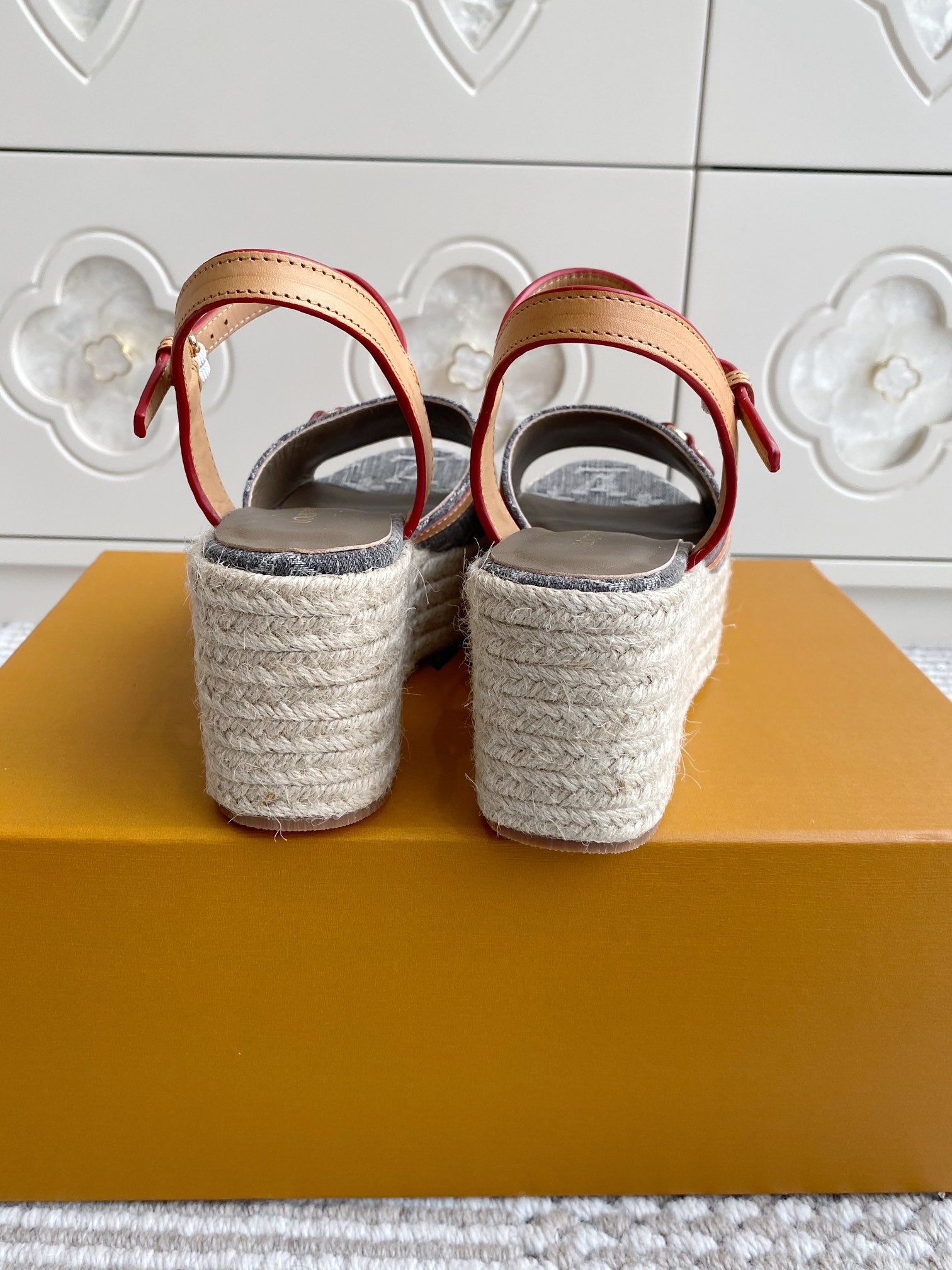 LV Grey Denim Monogram Wedge Sandals 7.5cm Grey Sheepskin Lining 291577