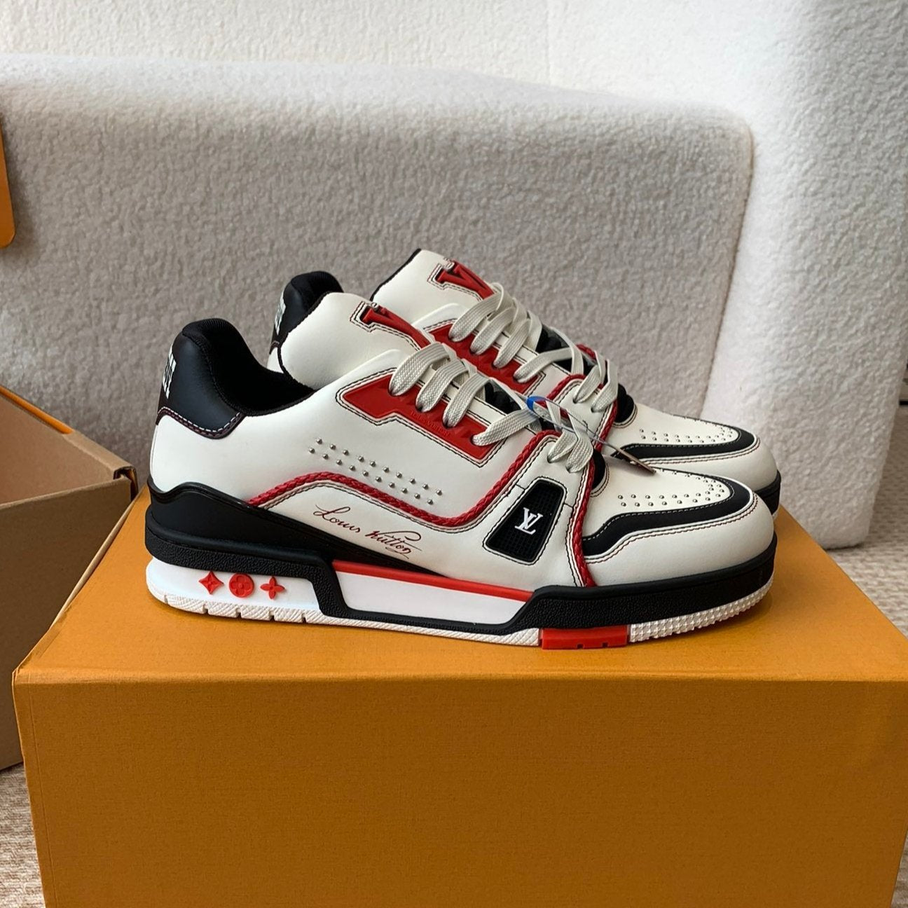 LV Trainer Sneaker White Mix Red Black Cowhide