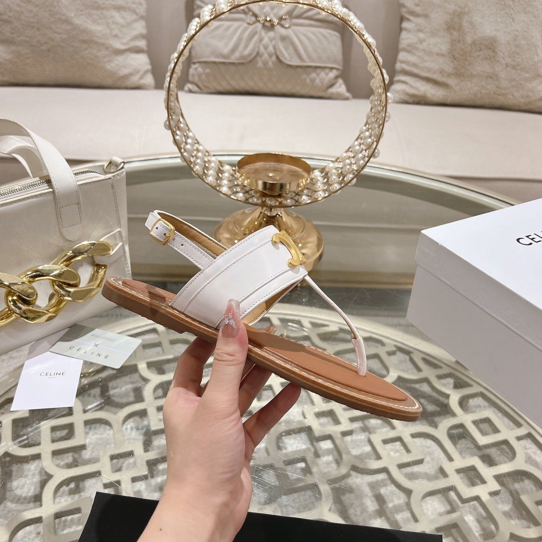 LYMPIA TRIOMPHE THONG IN CALFSKIN WHITE