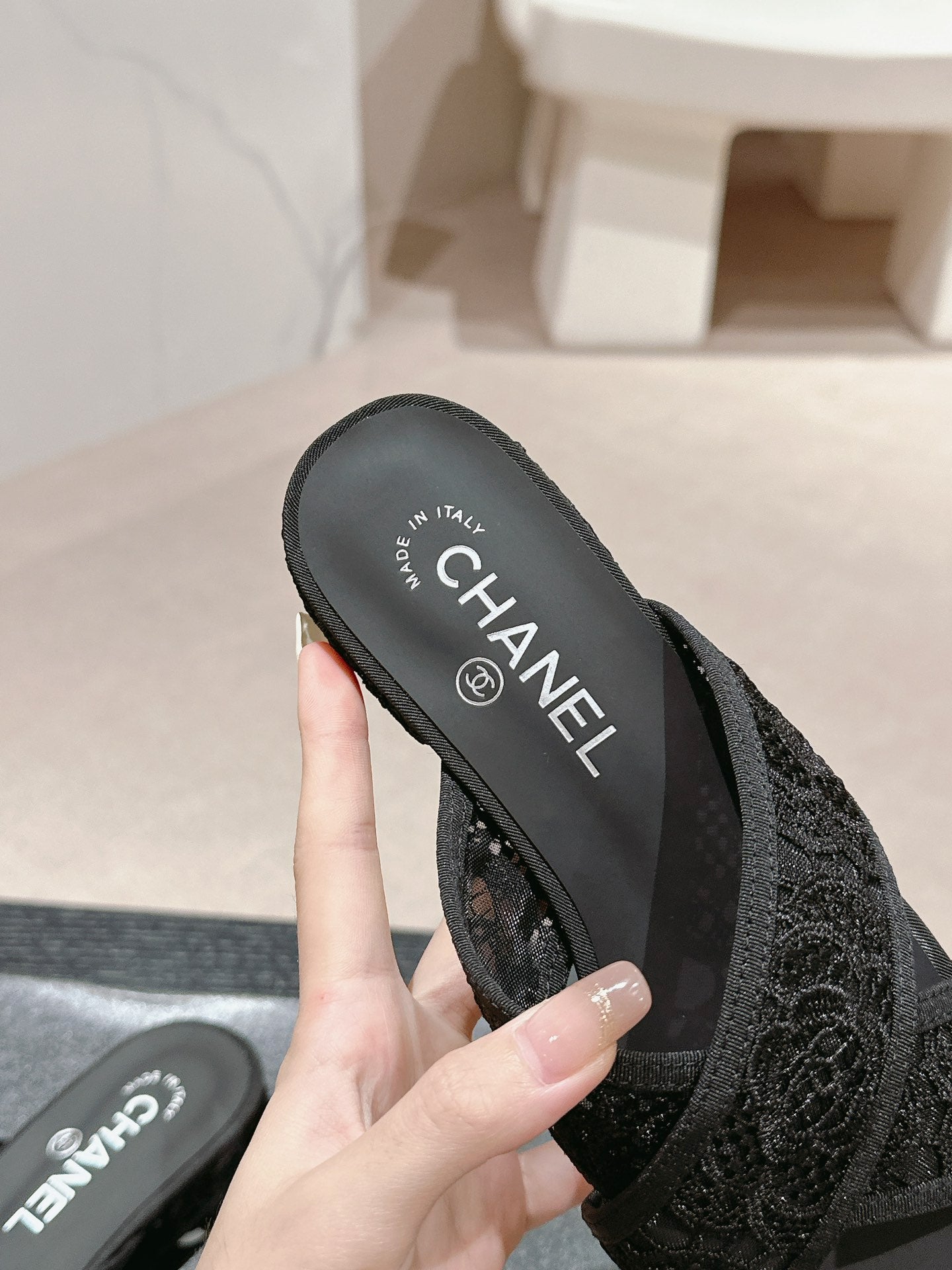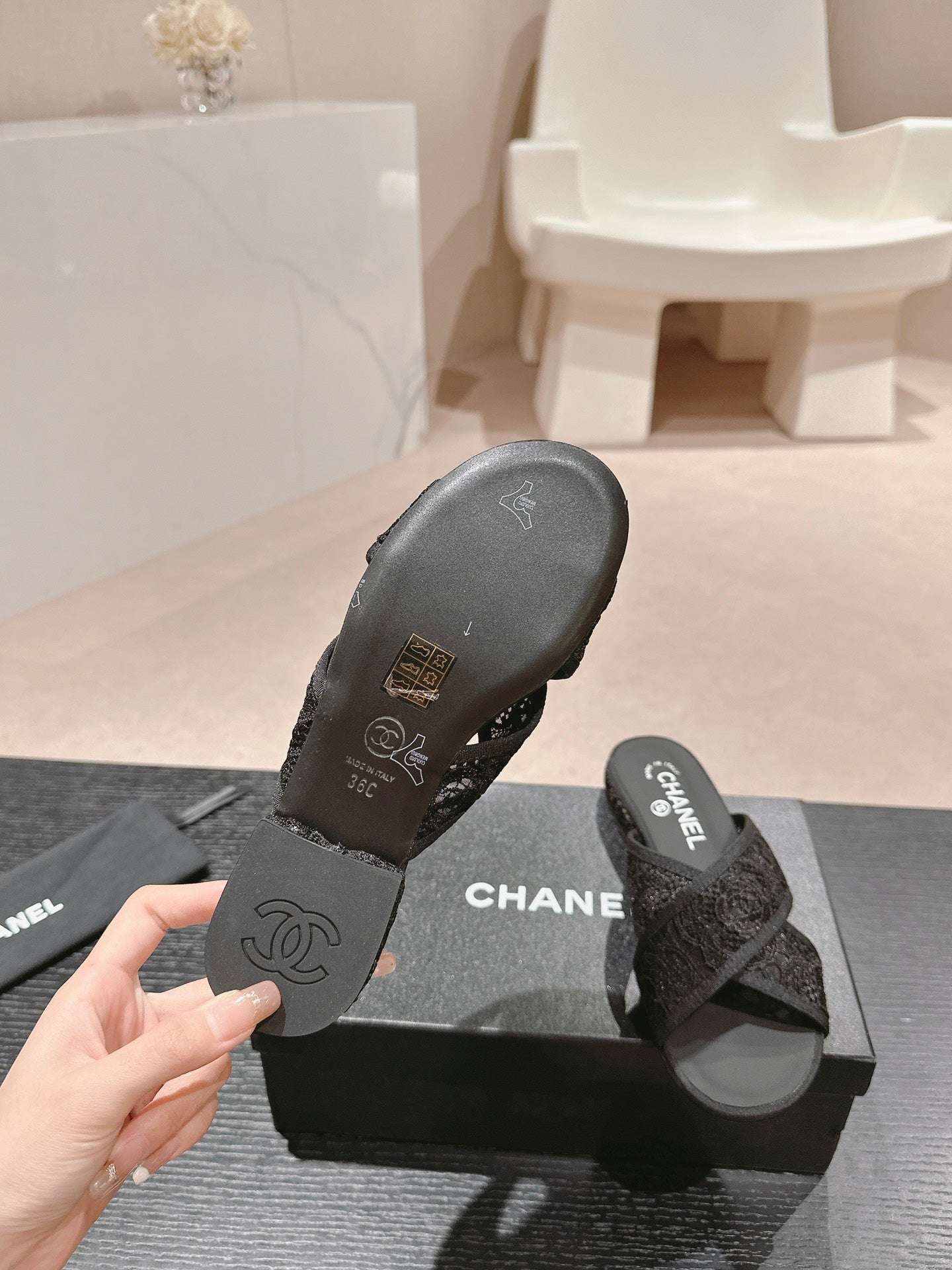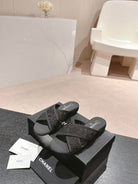 mule sandal cross black lace fabric