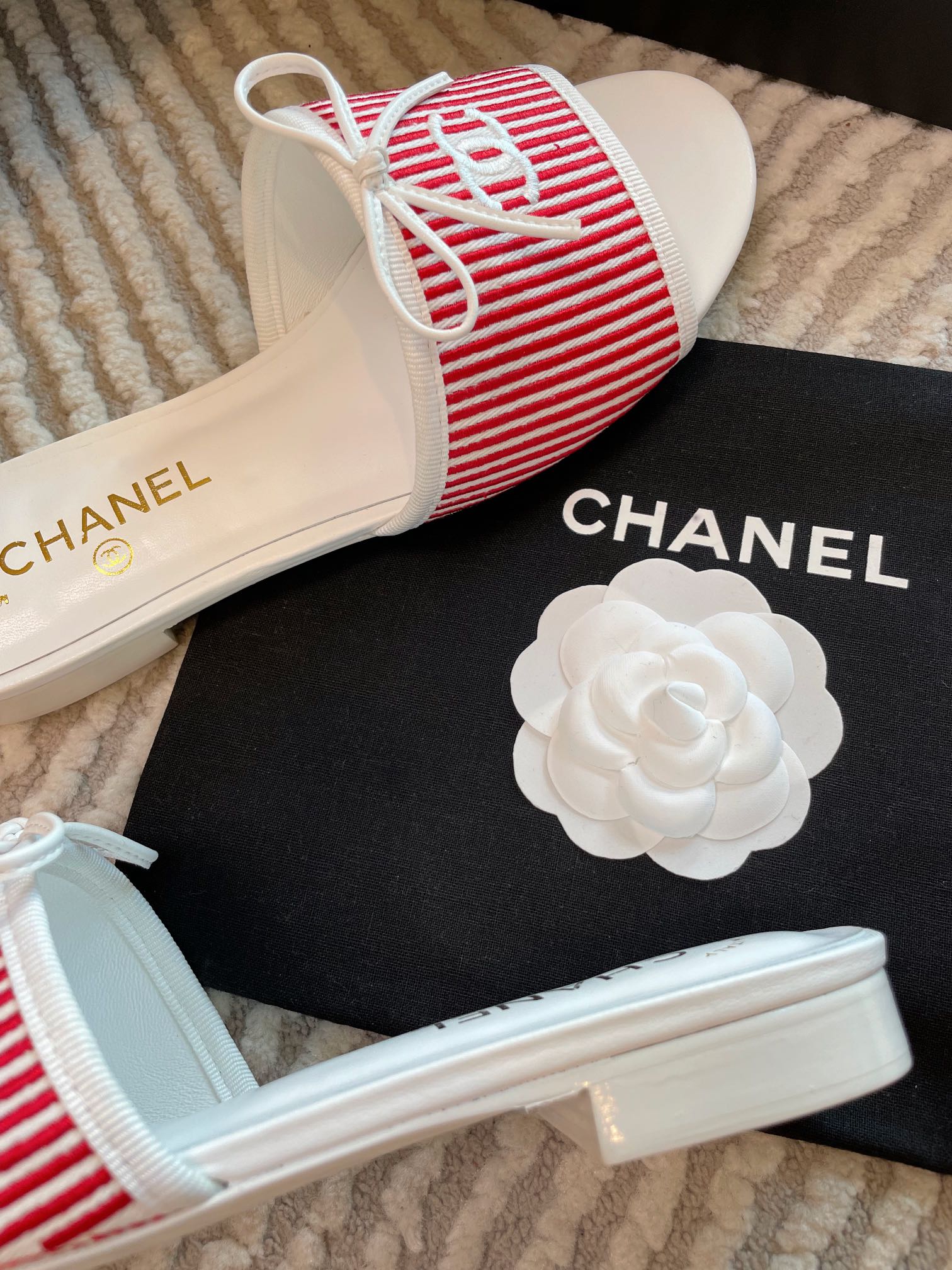 mule sandal white red embroidered fabric calfskin