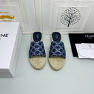 NEW FLAT FISHERMAN SLIPPERS NAVY BLUE COTTON CANVAS