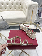 Rockstud 1cm Square Toe Rose Cannelle and Gold Leather Sandals