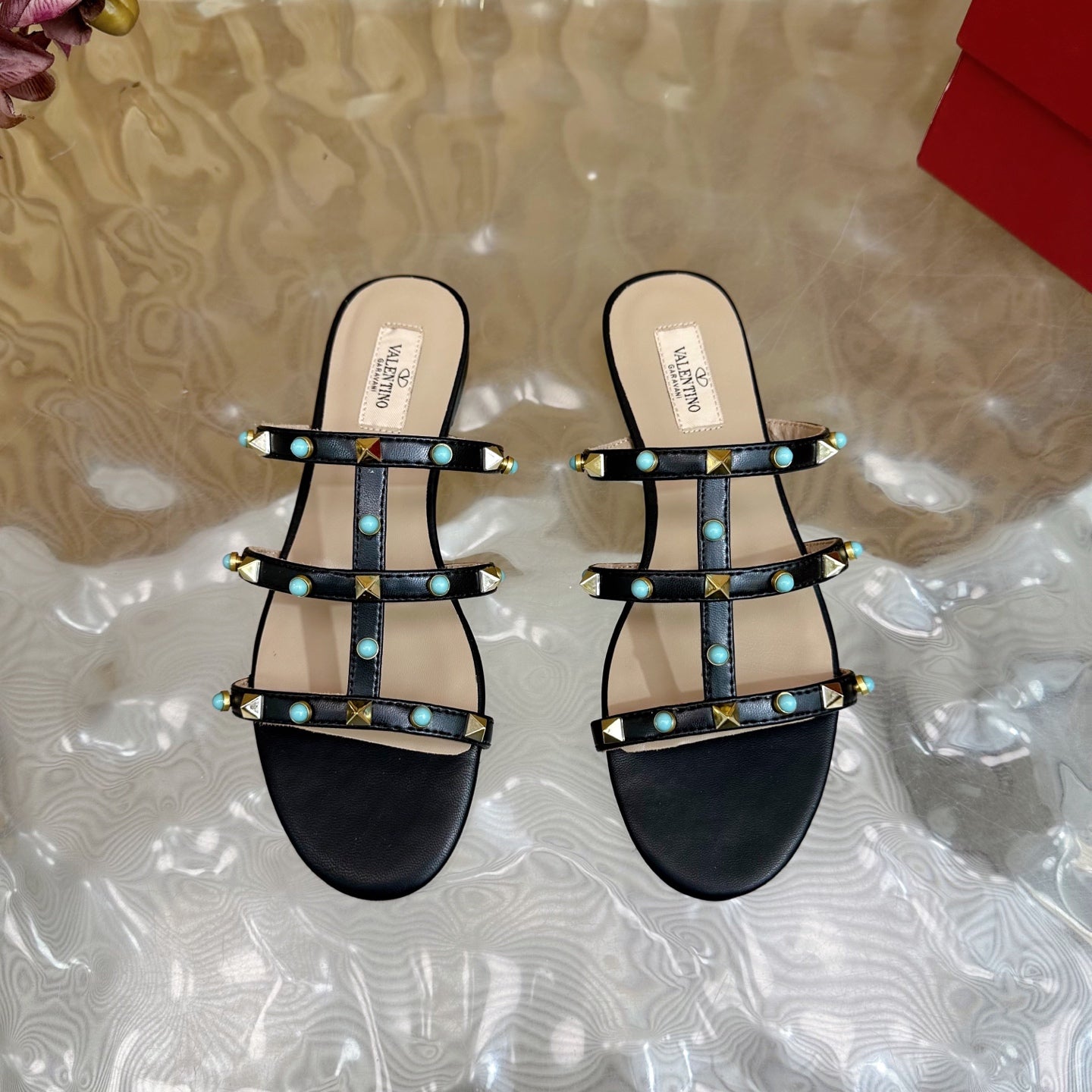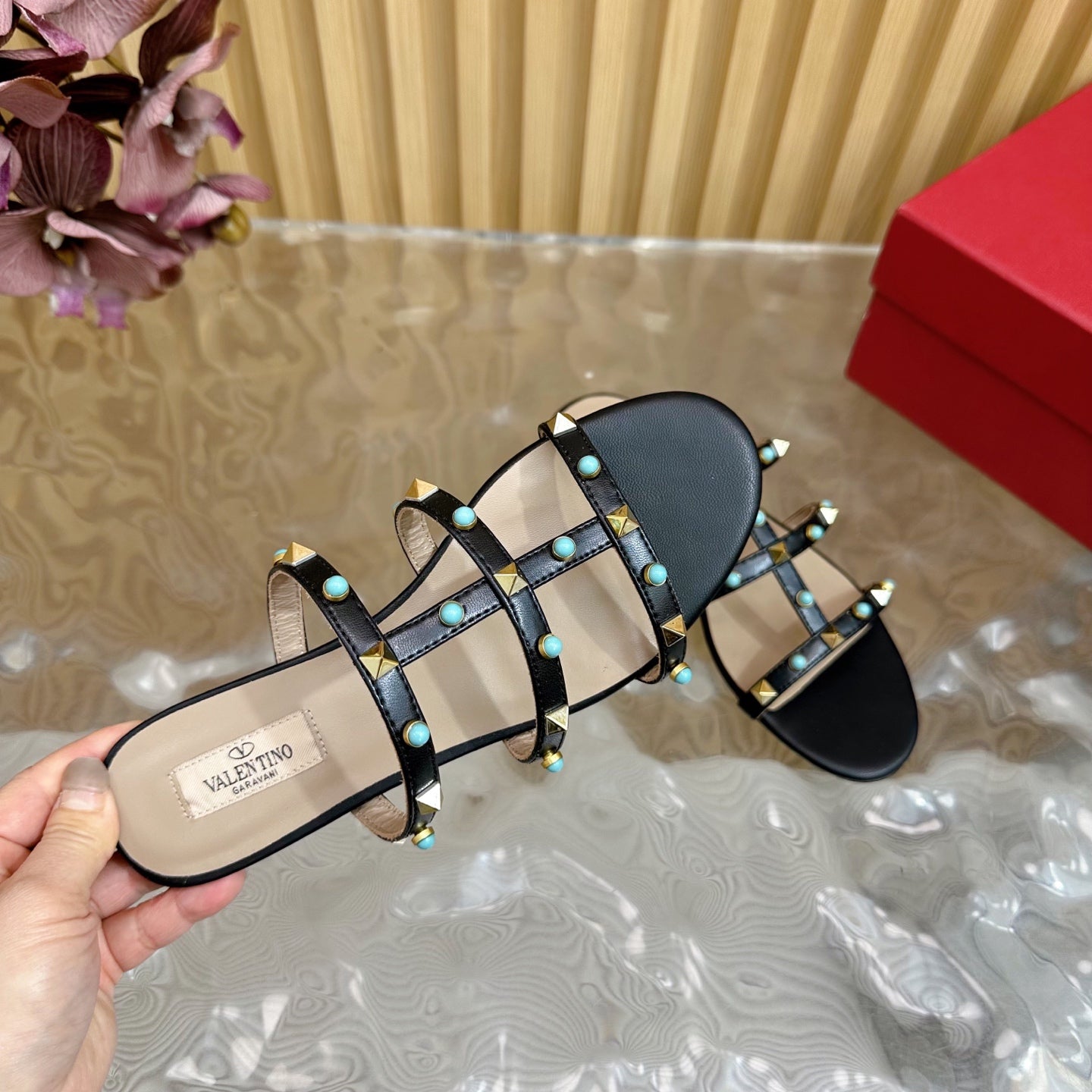 Rockstud Leather Caged Mule Sandals 10mm Black Sheepskin 307859