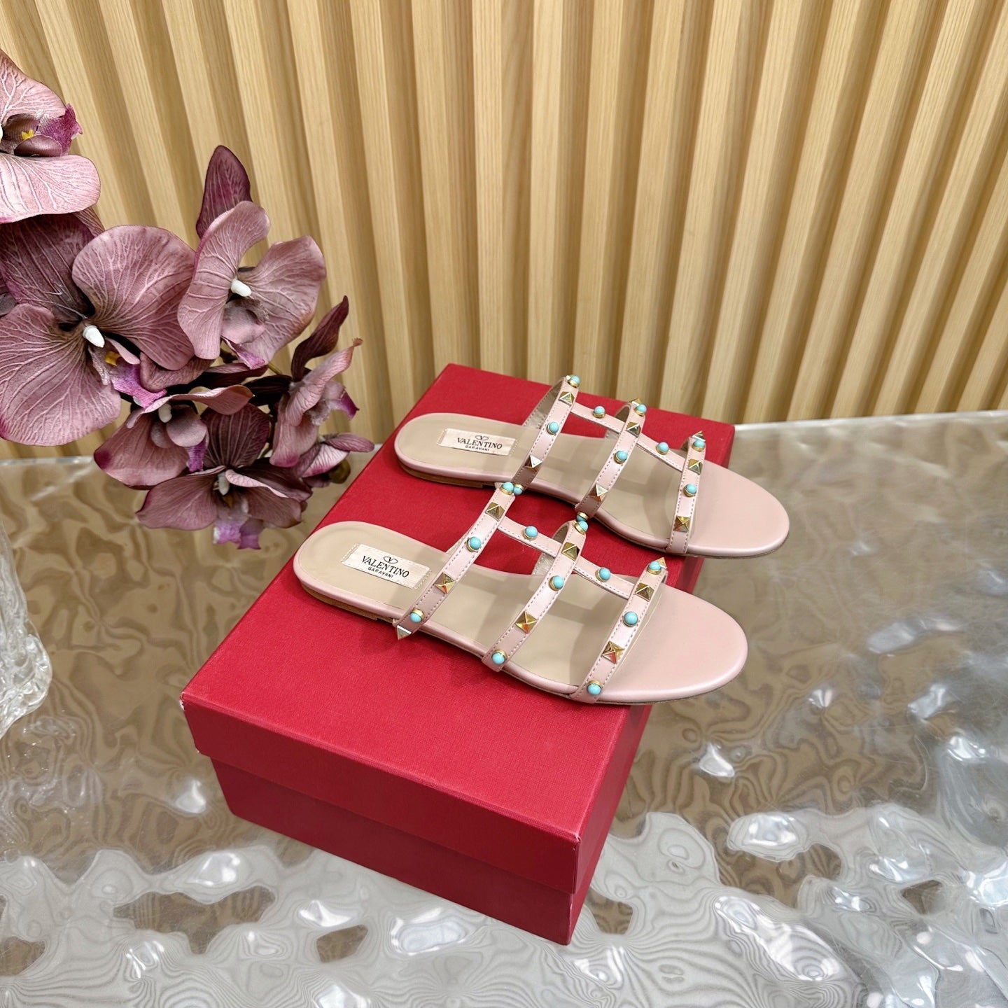 Rockstud Leather Caged Mule Sandals 10mm Pale Pink Sheepskin 307858