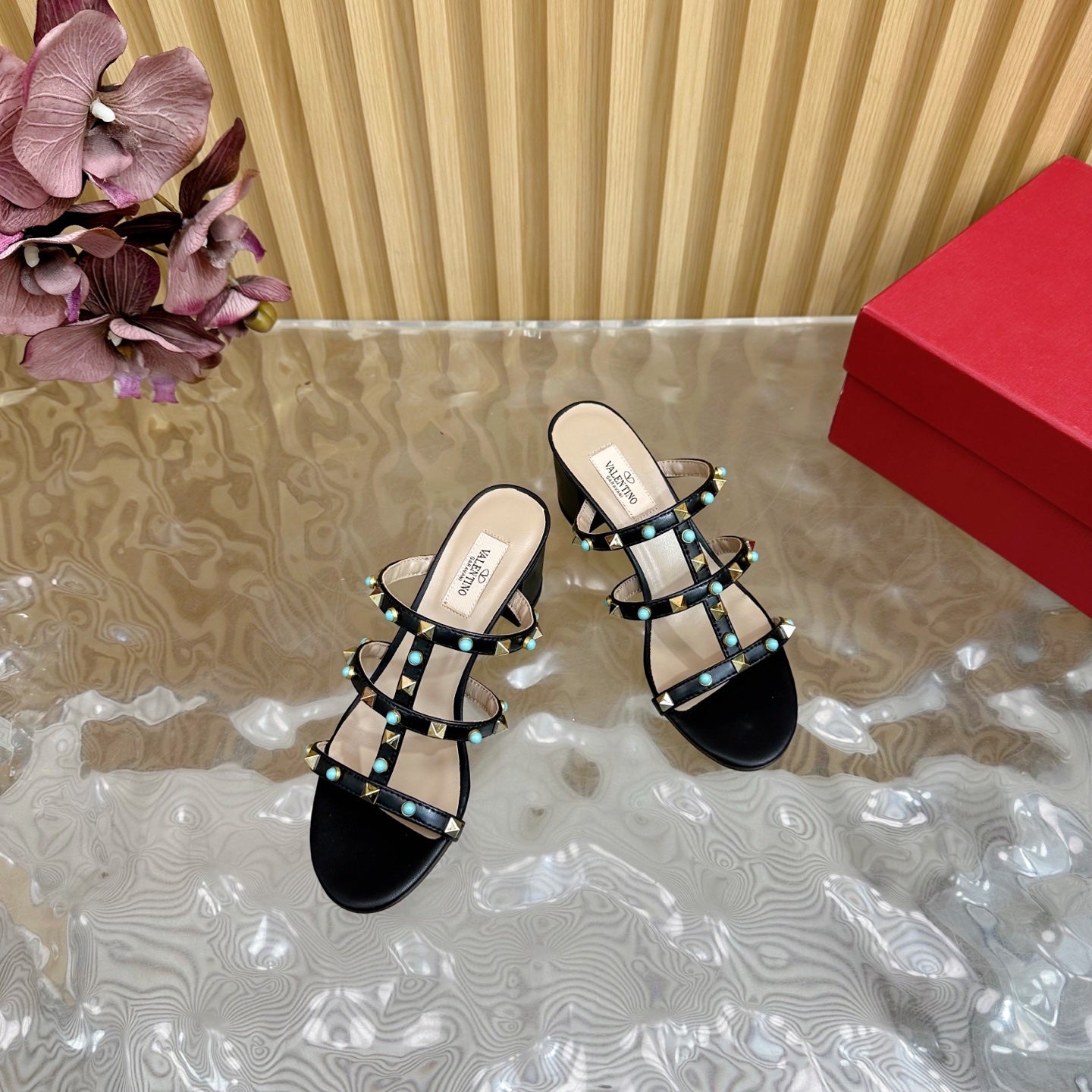 Rockstud Leather Caged Mule Sandals 60mm Black Sheepskin 307862