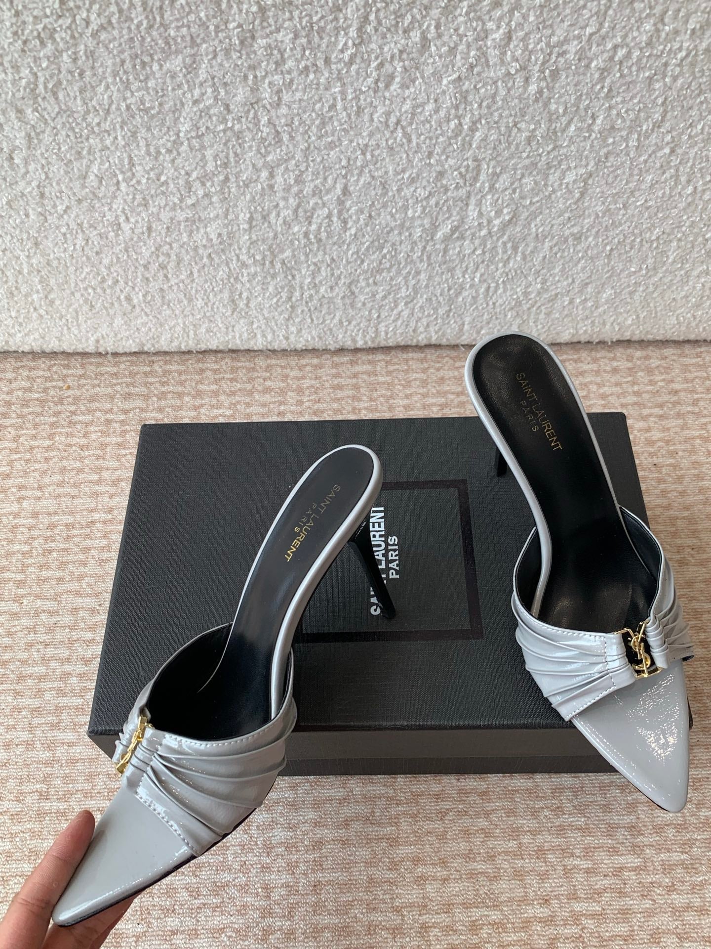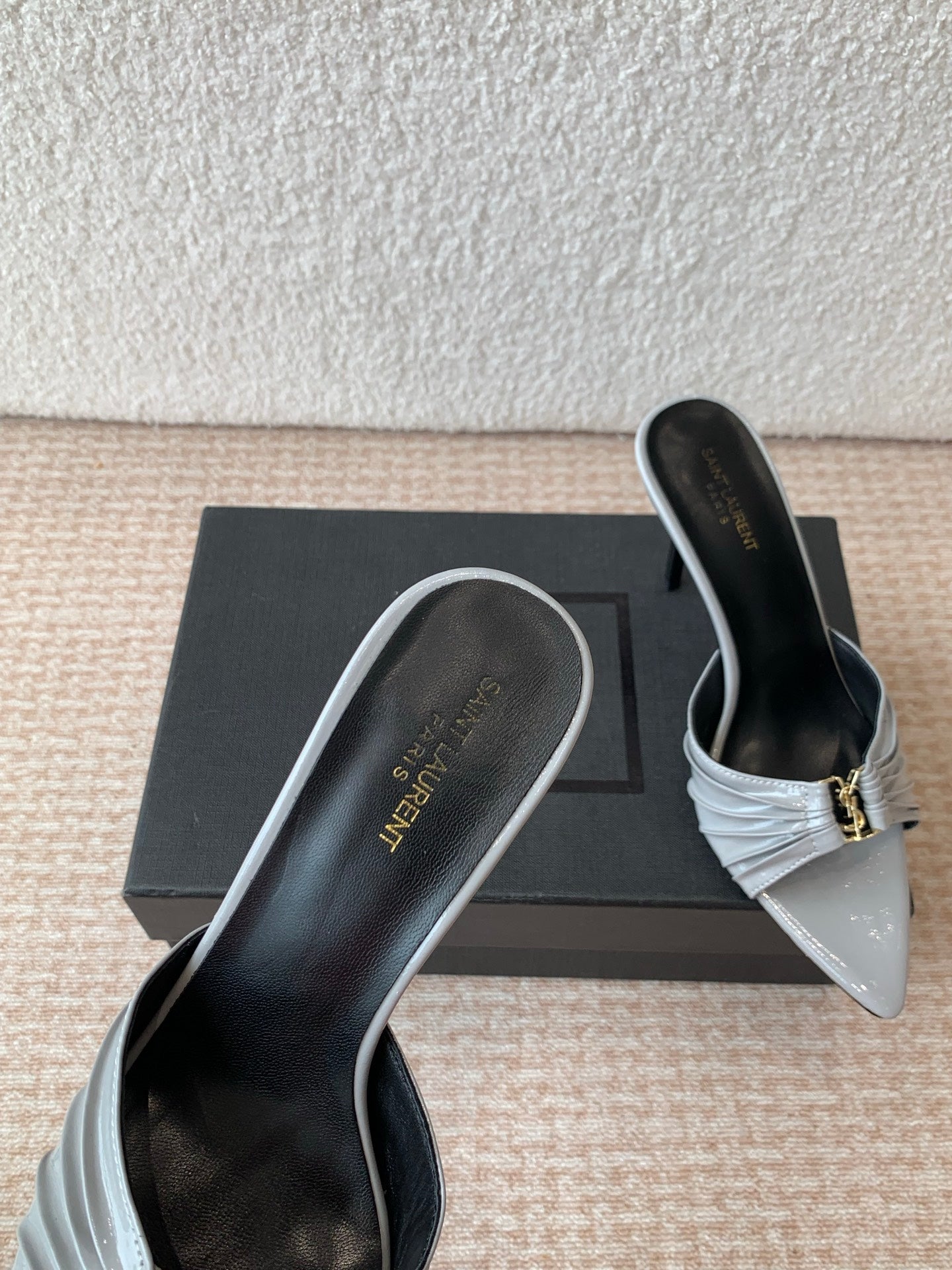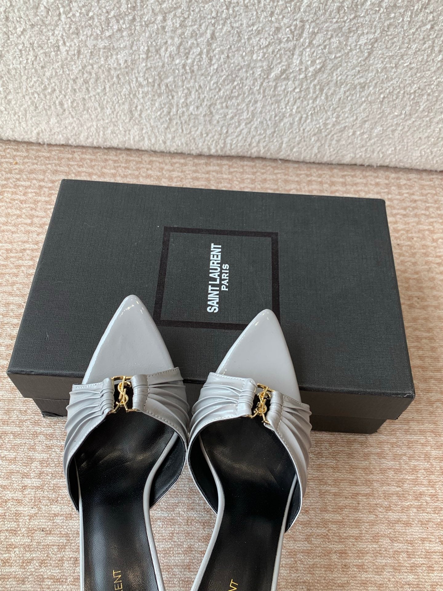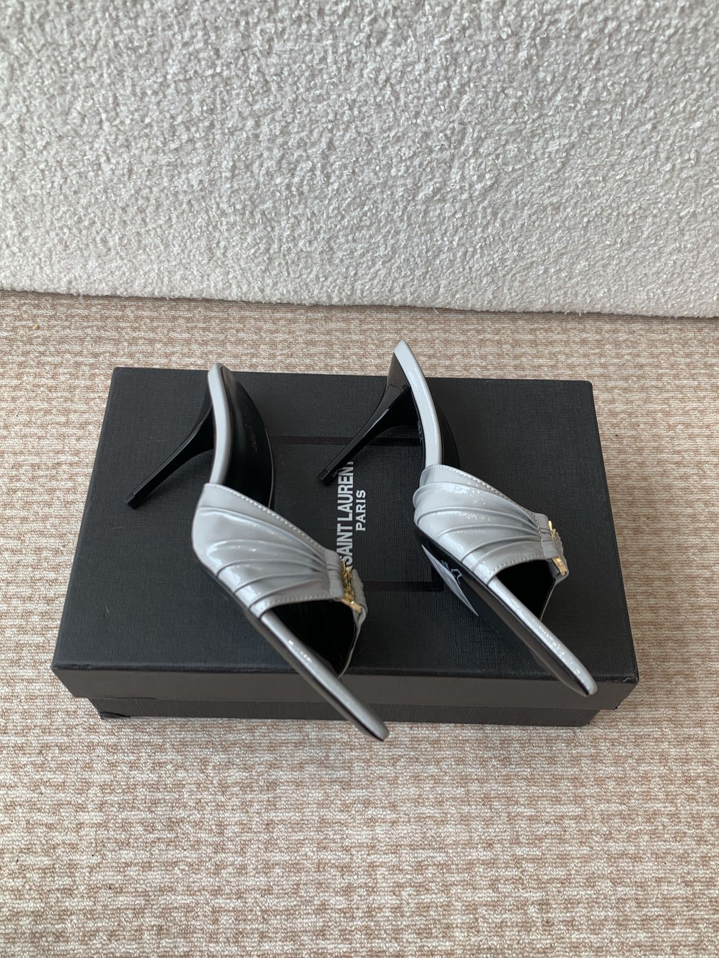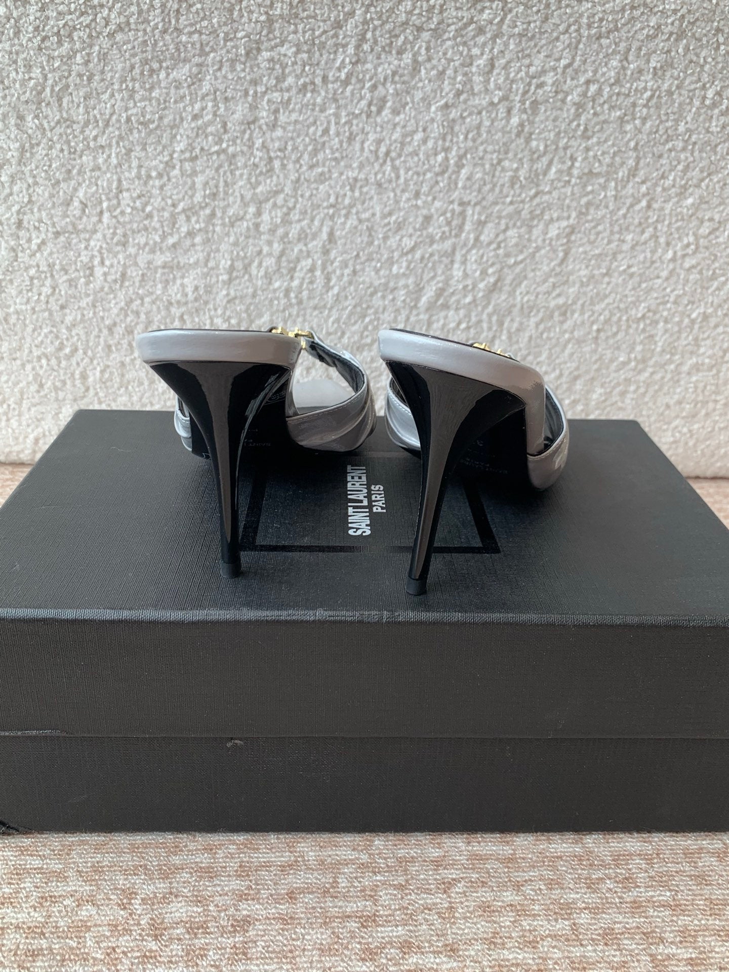 SL Babylone Sandal Heeled 10cm Grey Patent Calfskin