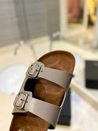 SL Flat Sandal Women Brown Seude Grey Calfskin