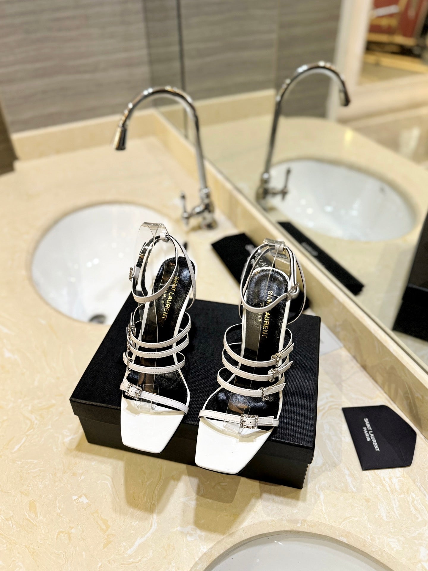 SL JERRY HEELED SANDALS WHITE SATIN