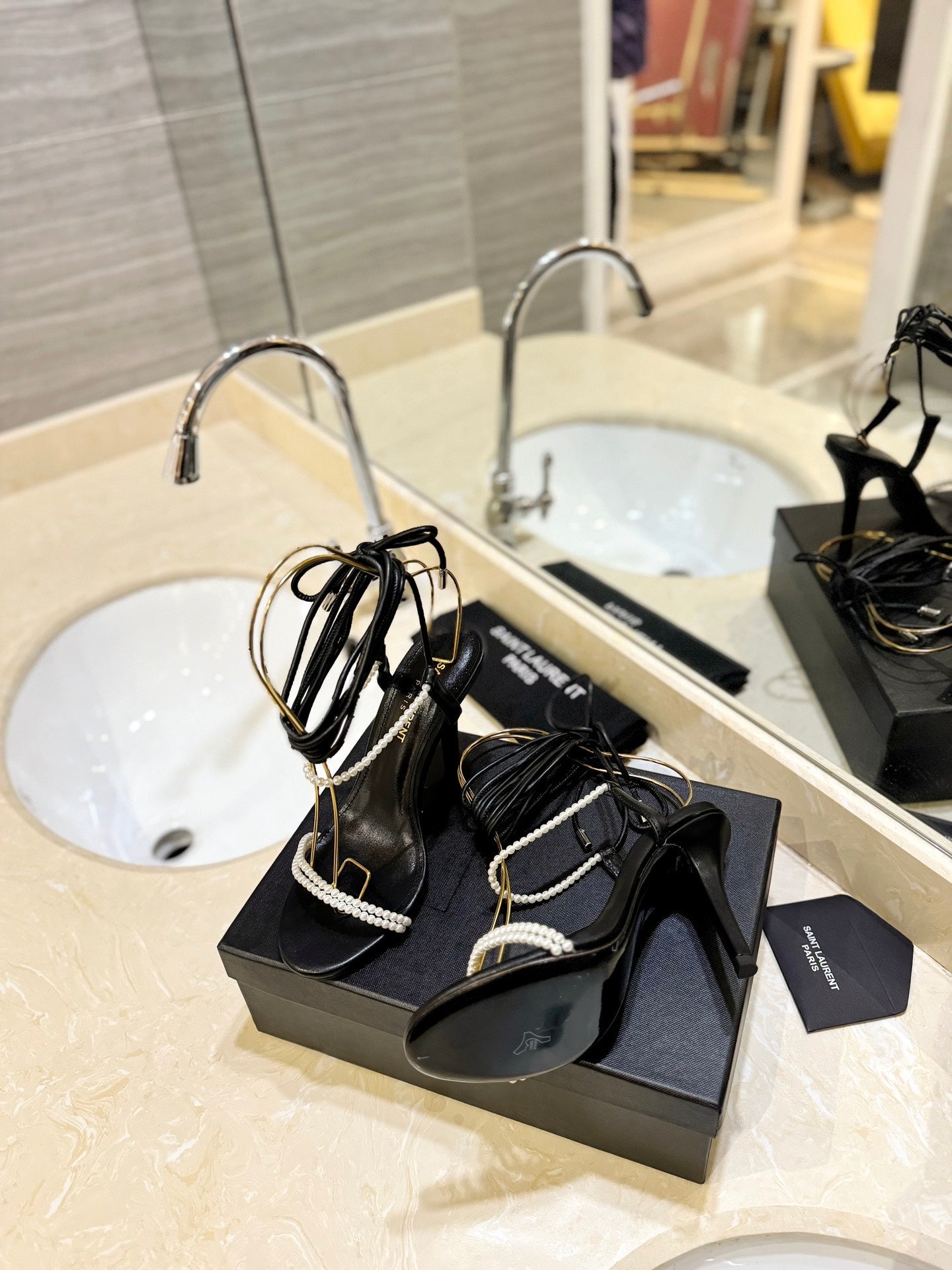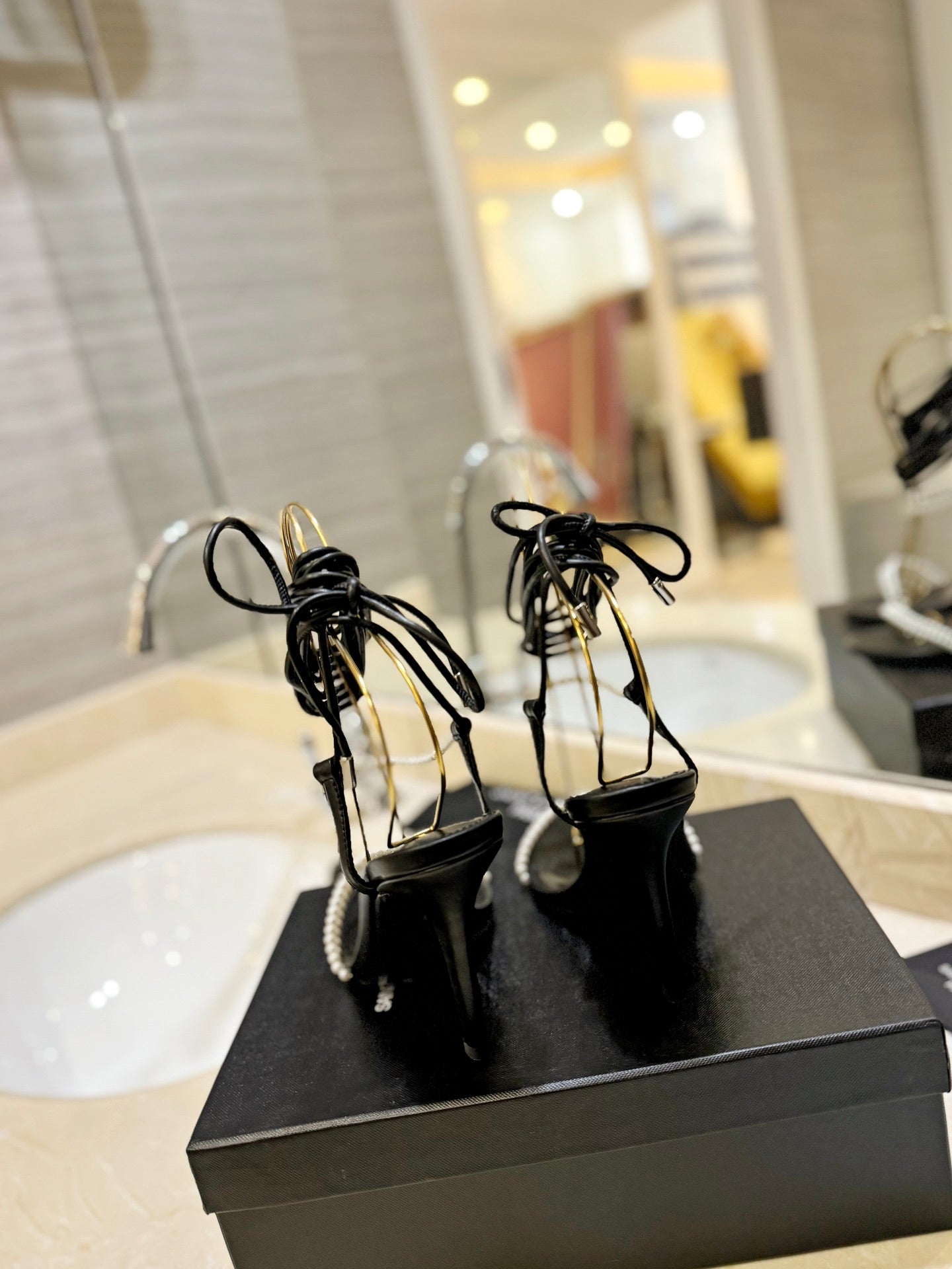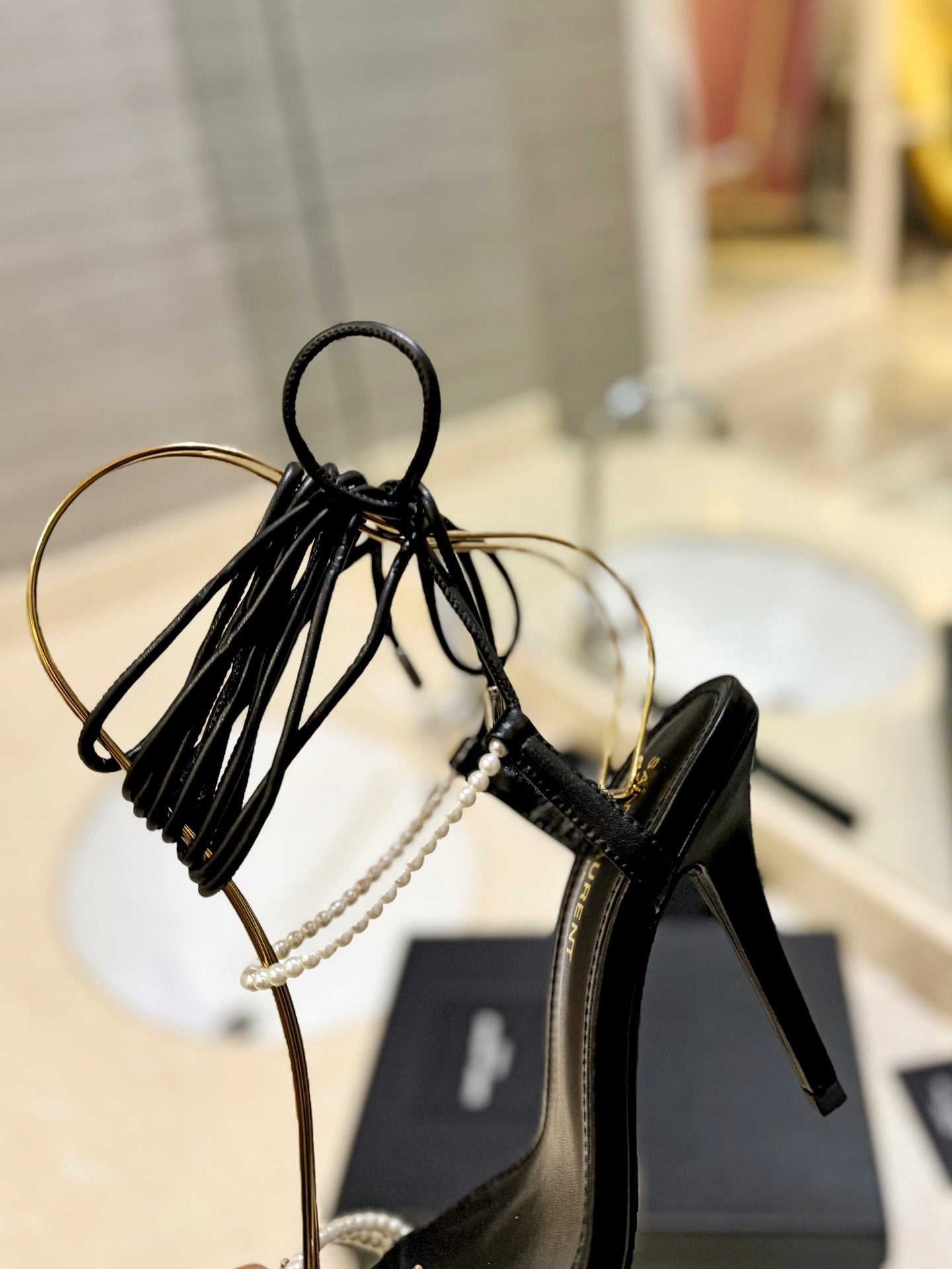 SL PEARL HIGH HEEL SANDALS BLACK CALFSKIN