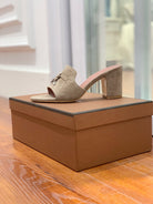 Summer Charms Mules 80 Taupe Suede Pink Lambskin