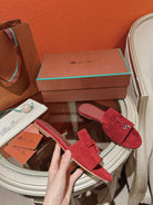 Summer Charms Sandals in Red Suede Maroon Lambskin