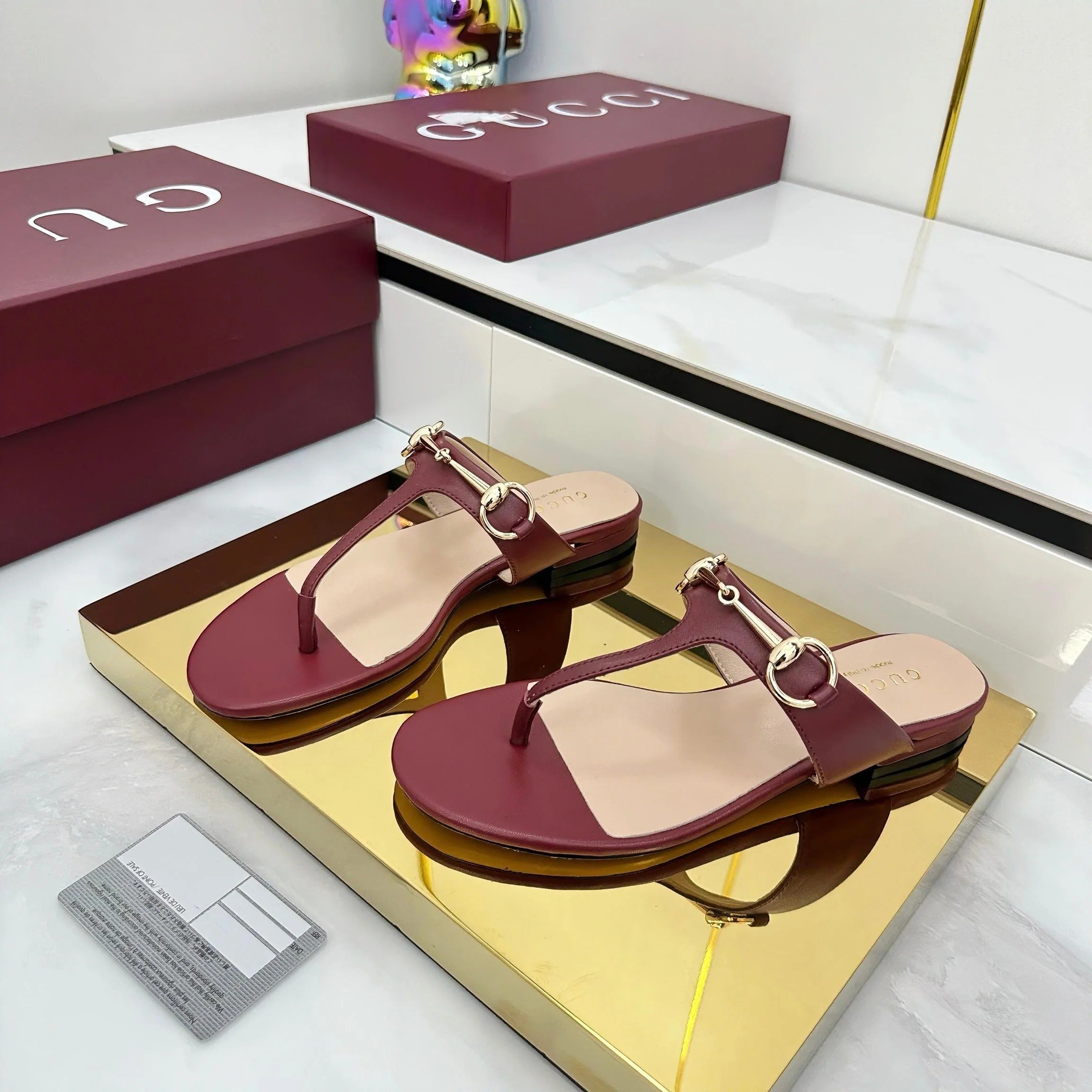 THONG SANDALS IN RED LAMBSKIN WITH GOLD HARDWARE
