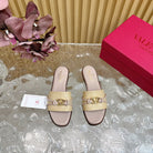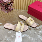 VLogo Raffia-Trimmed Leather Slides In Rose Pink Mix Beige Sedge Weaving Yarn And Lambskin 102809