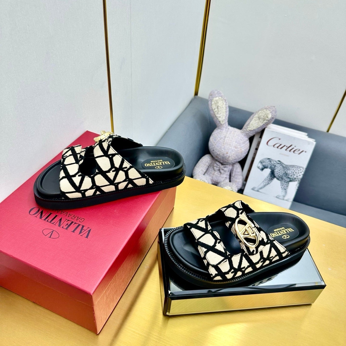 VT 25 Platform Sandals Black Beige Slippers Cowhide