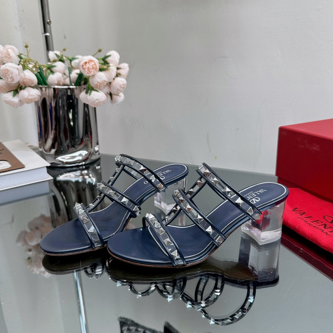 VT 25 Rockstud Sandals 65mm Navy Blue PVC Sheepskin