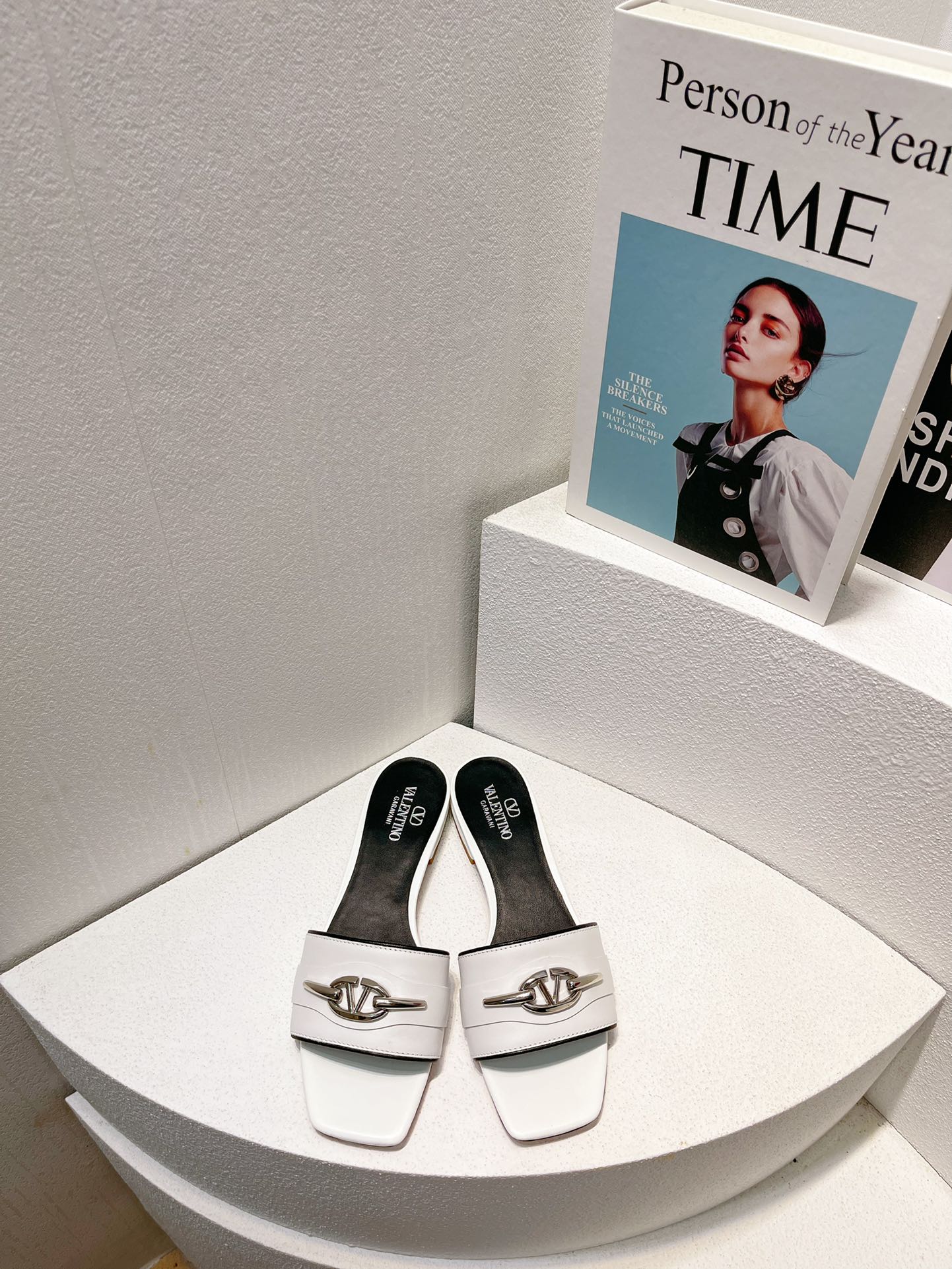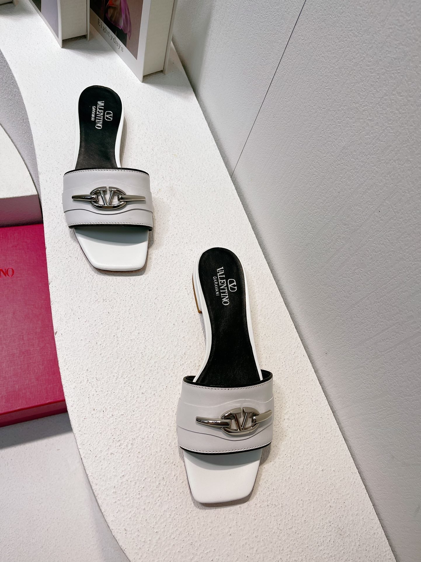 VT Moon Slides in Leather White Cowhide 292865