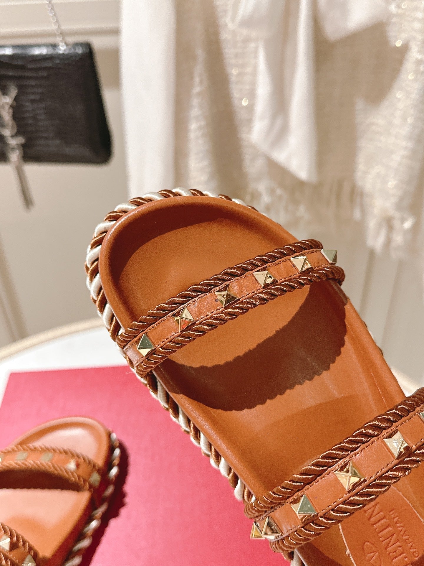 VT Rockstud Sandals Brown Espadrilles Cowhide 328127