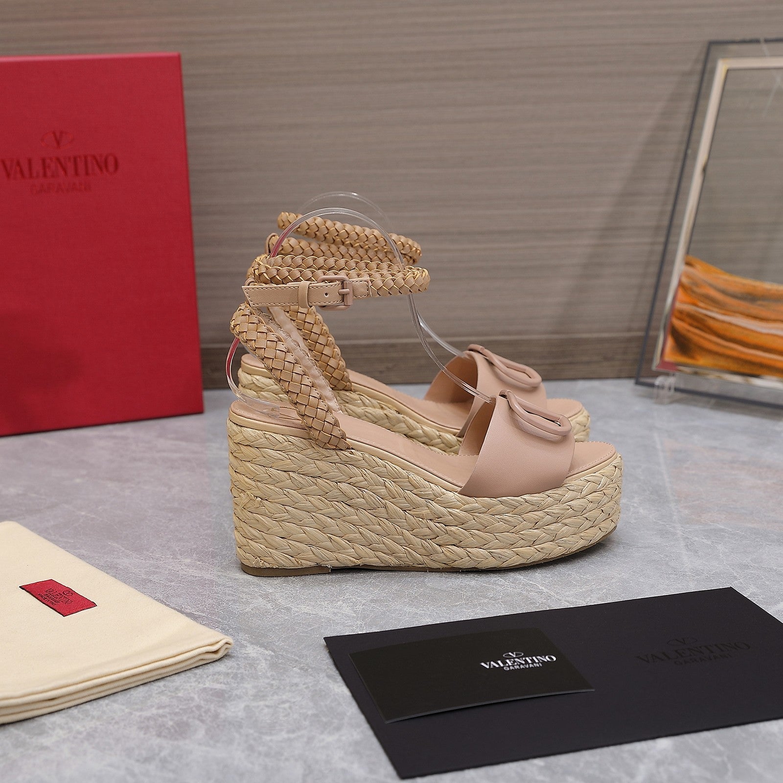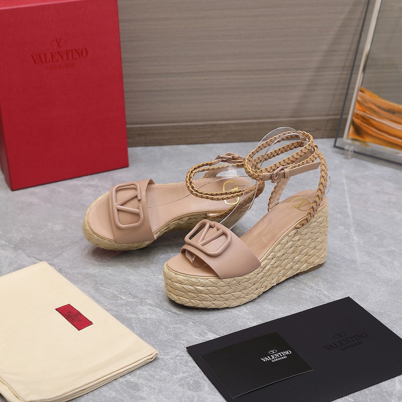 VT Wedge Platform Sandals Nude Cowhide Espadrilles