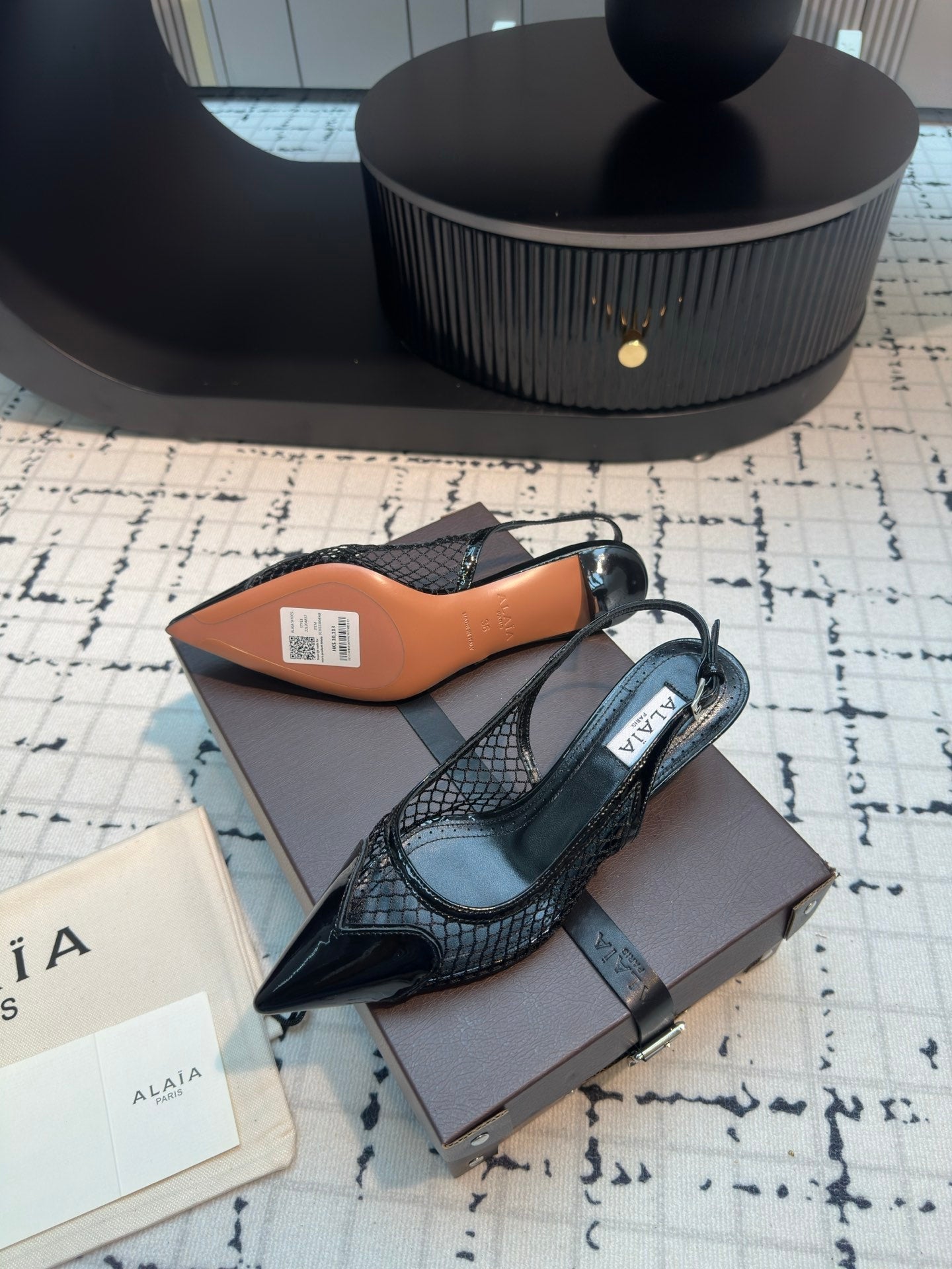 Alaia Heart 50mm Heels Slingbacks Black Sheepskin 800933