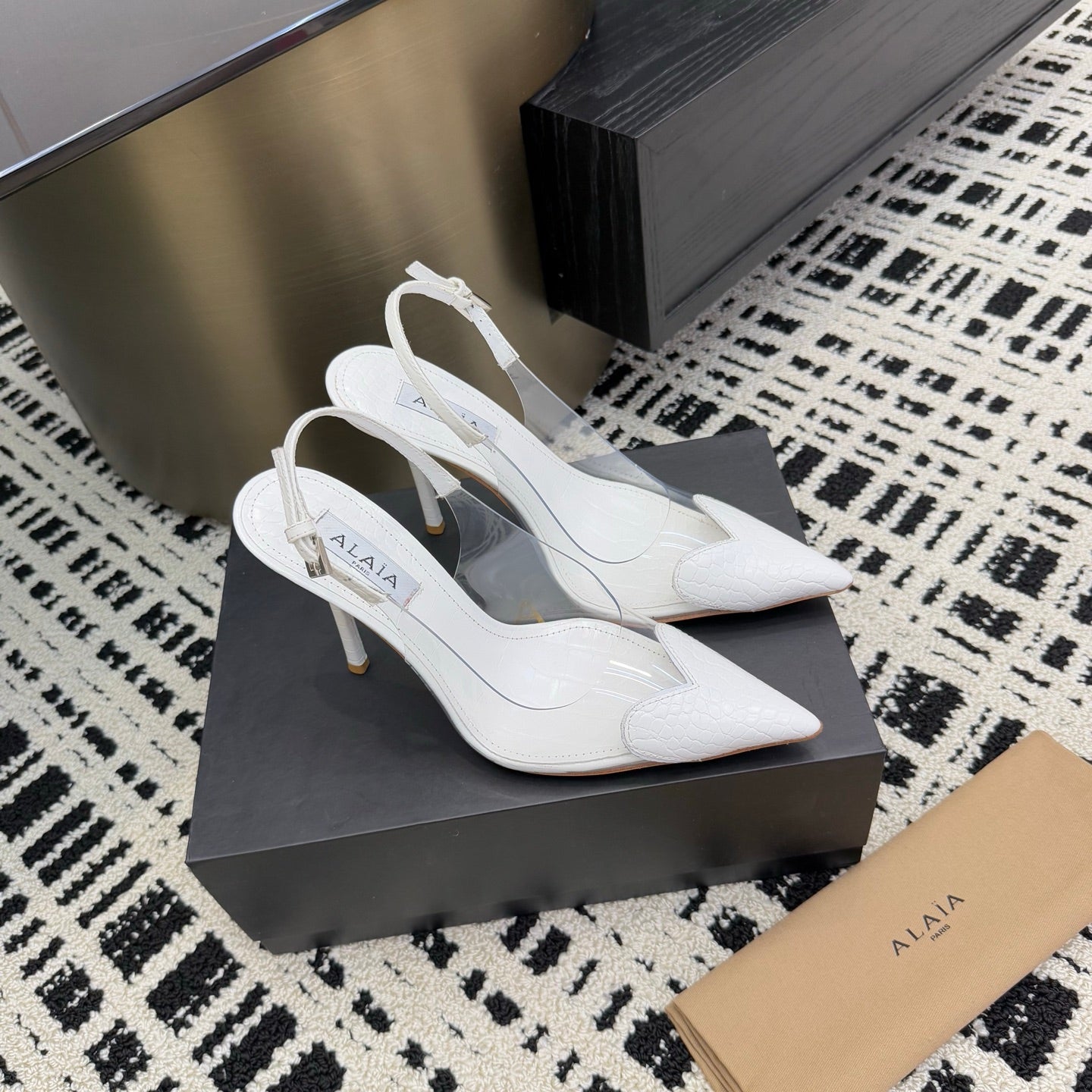 Alaia High Heels Slingbacks White Sheepskin 299841