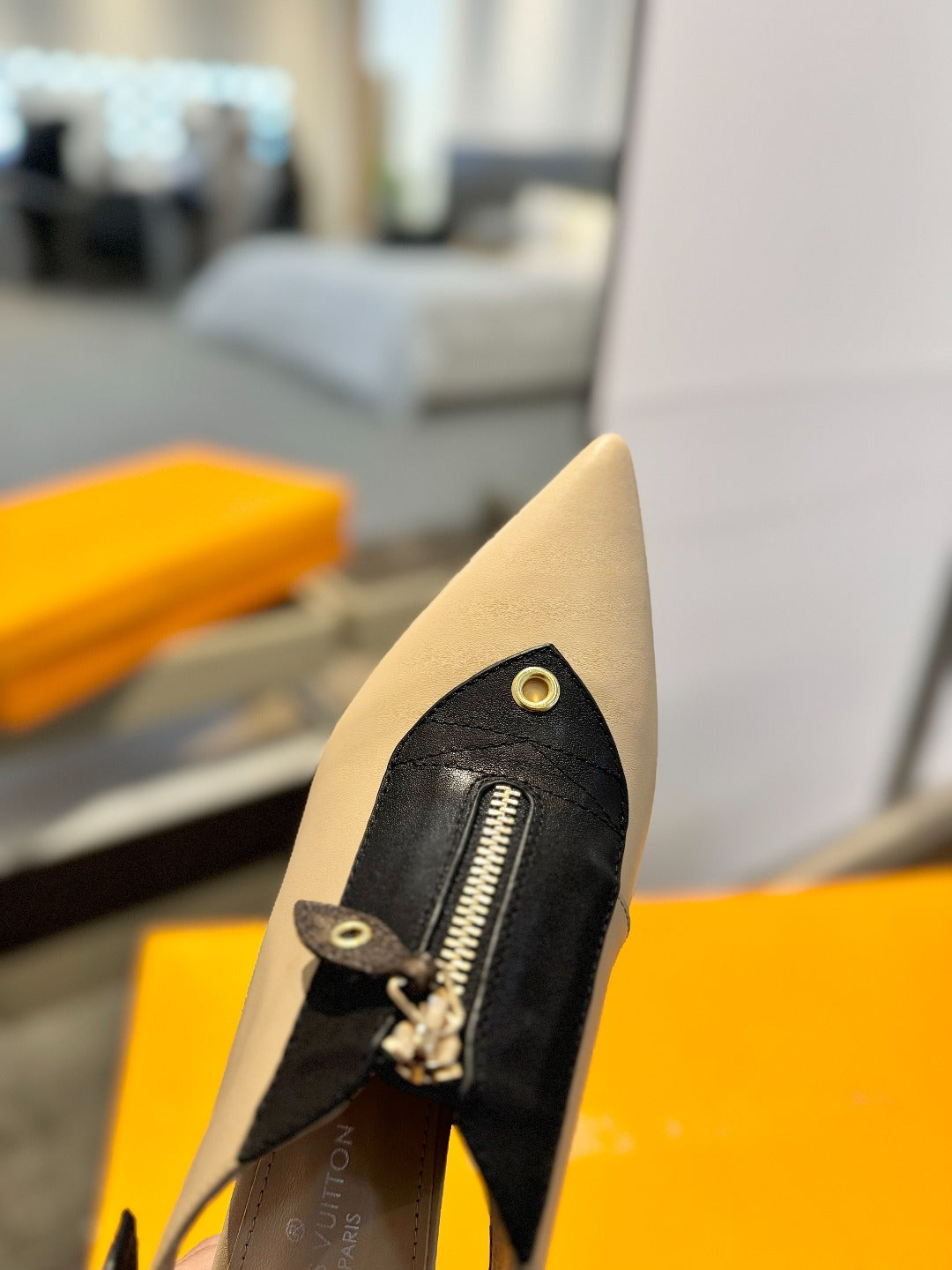 ALLURE HIGH 4.5 CM SLINGBACK IN SAND BROWN MIX BLACK CALFSKIN