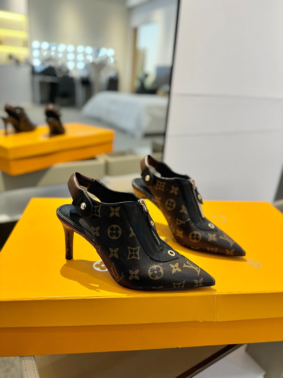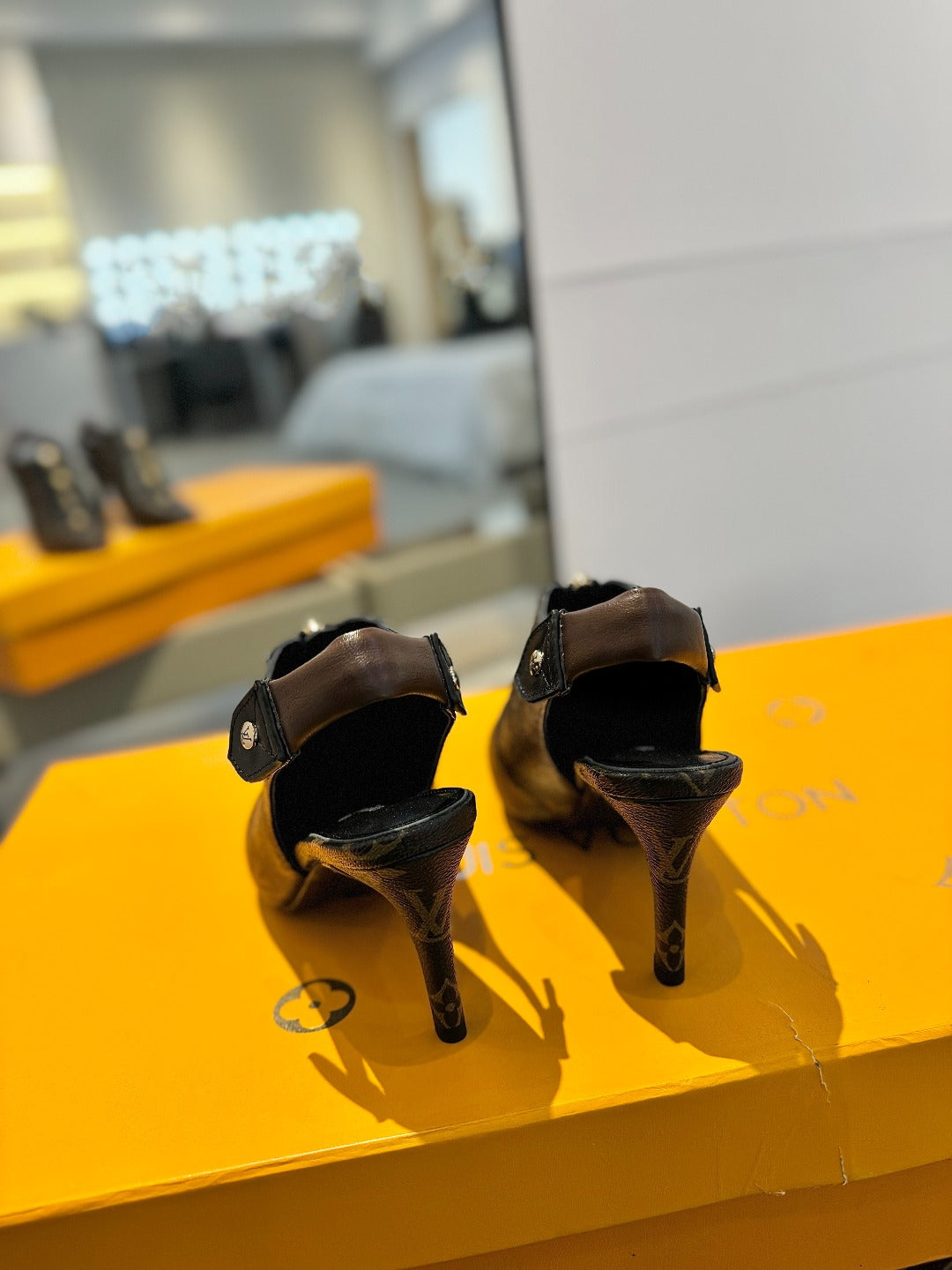 ALLURE HIGH 8 CM SLINGBACK IN CHOCOLATE BROWN MONOGRAM CALFSKIN