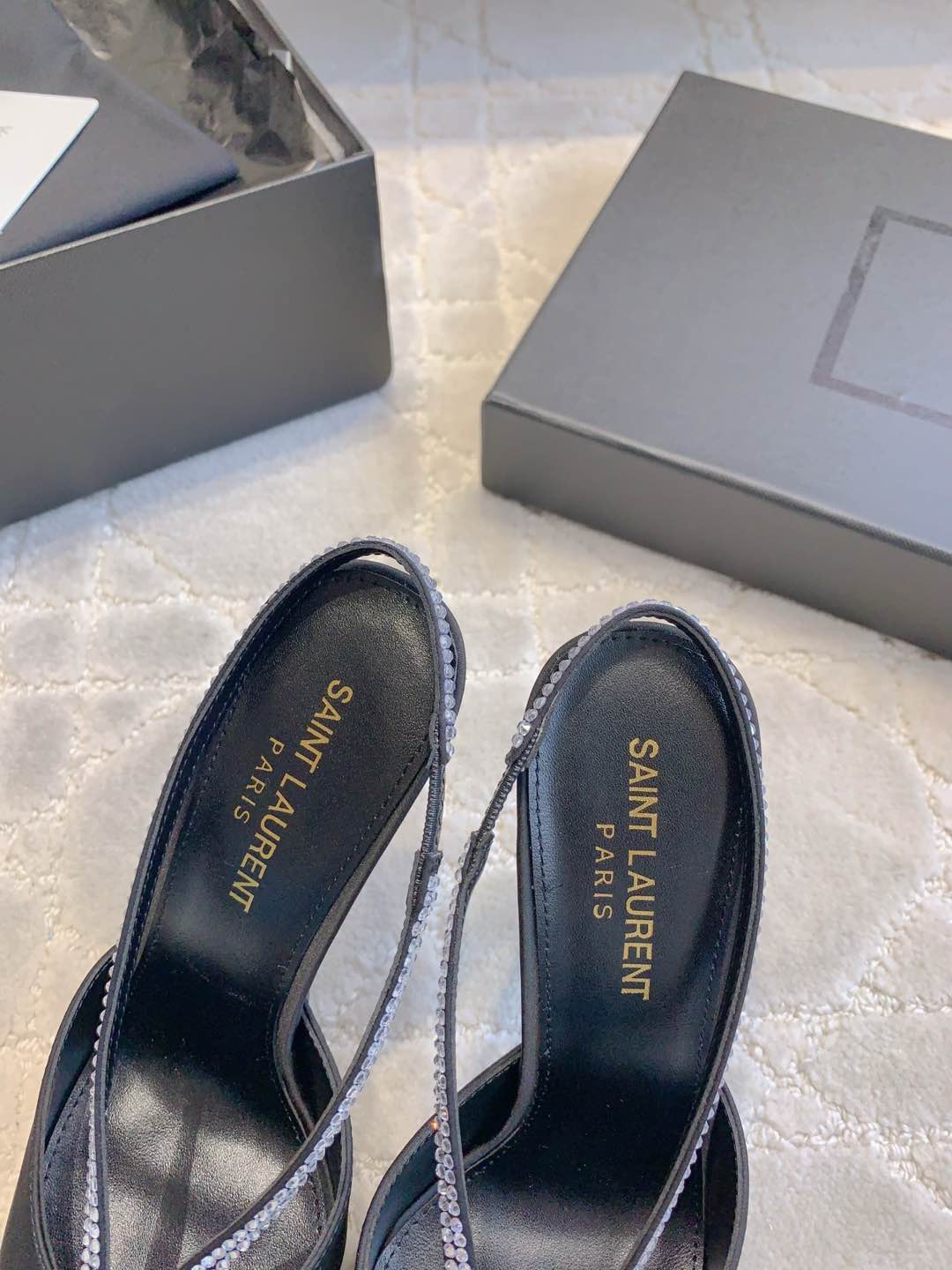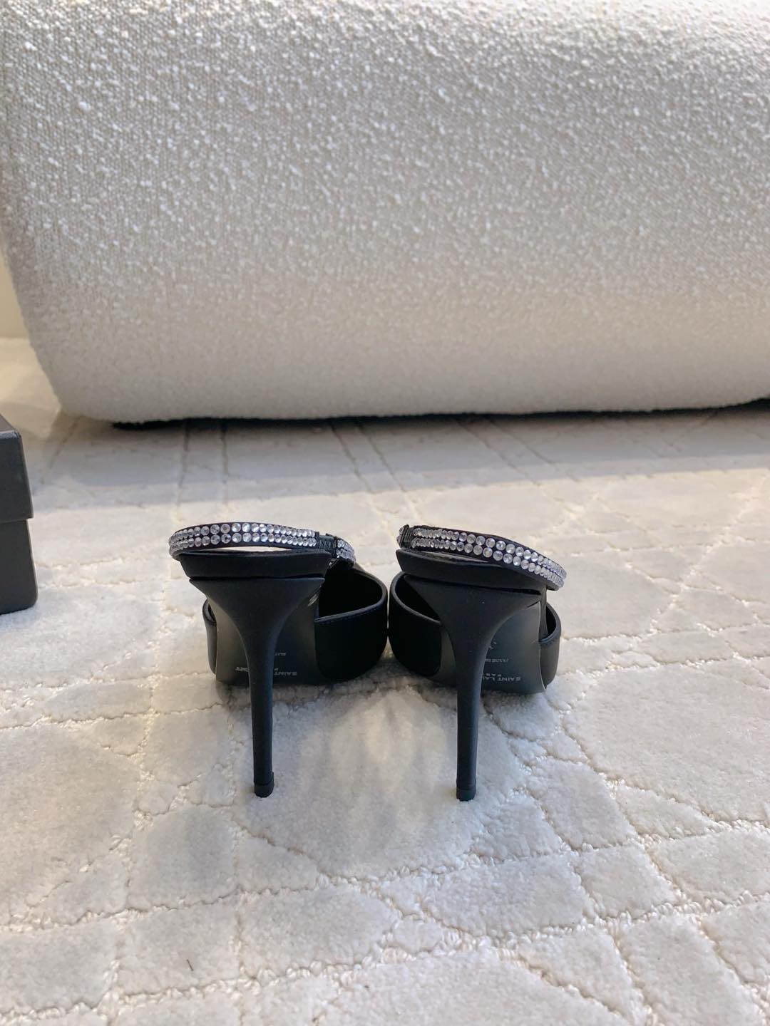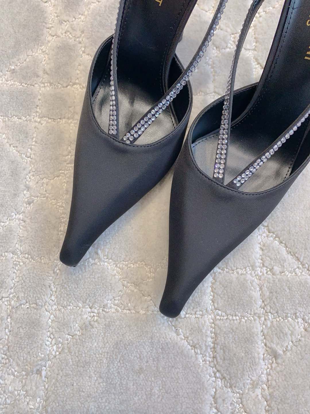 AMANDA SLINGBACK PUMPS IN BLACK SILK WITH RHINESTONES