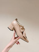 CC 24A Pearl Bow Slingbacks 65mm Beige Sheepskin 447466