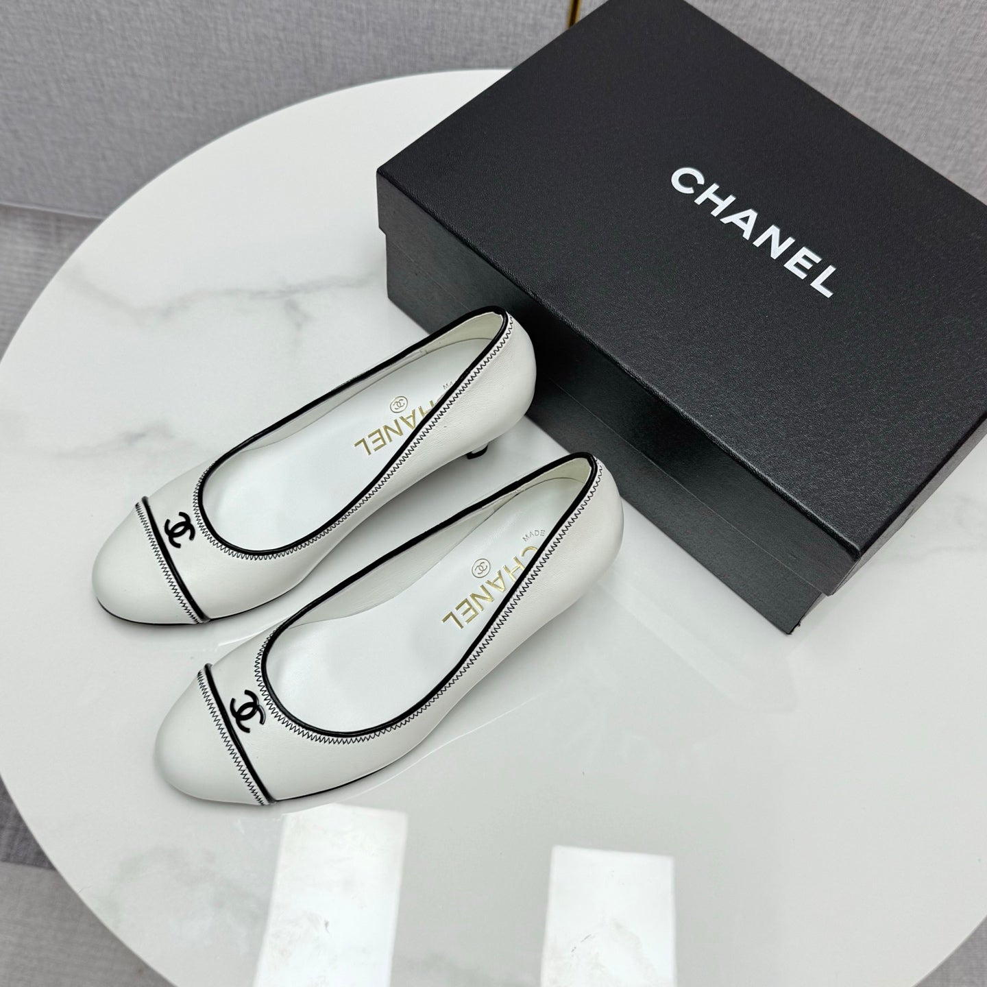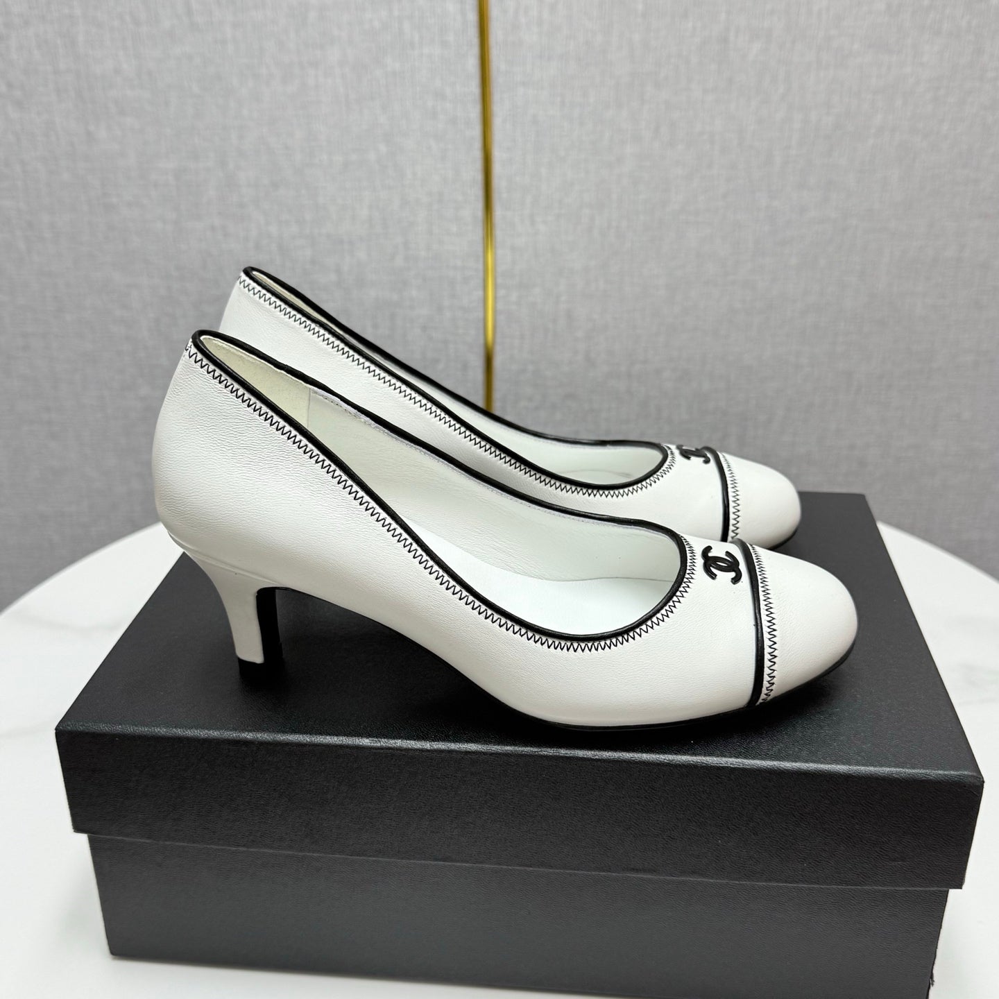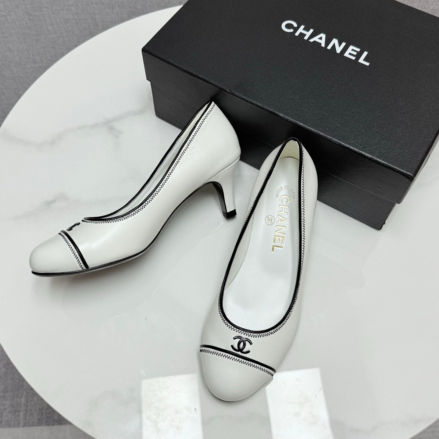 CC 25 Pumps 50mm White Black Sheepskin 368794