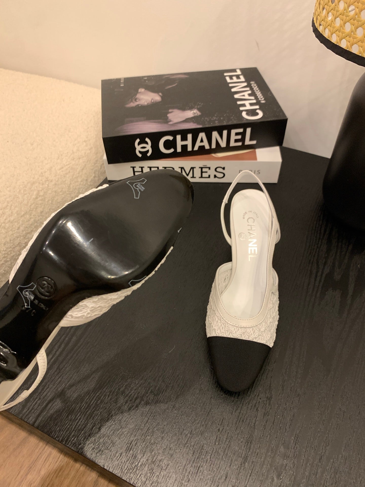 CC 25 Slingback 50mm White Fabric Grosgrain
