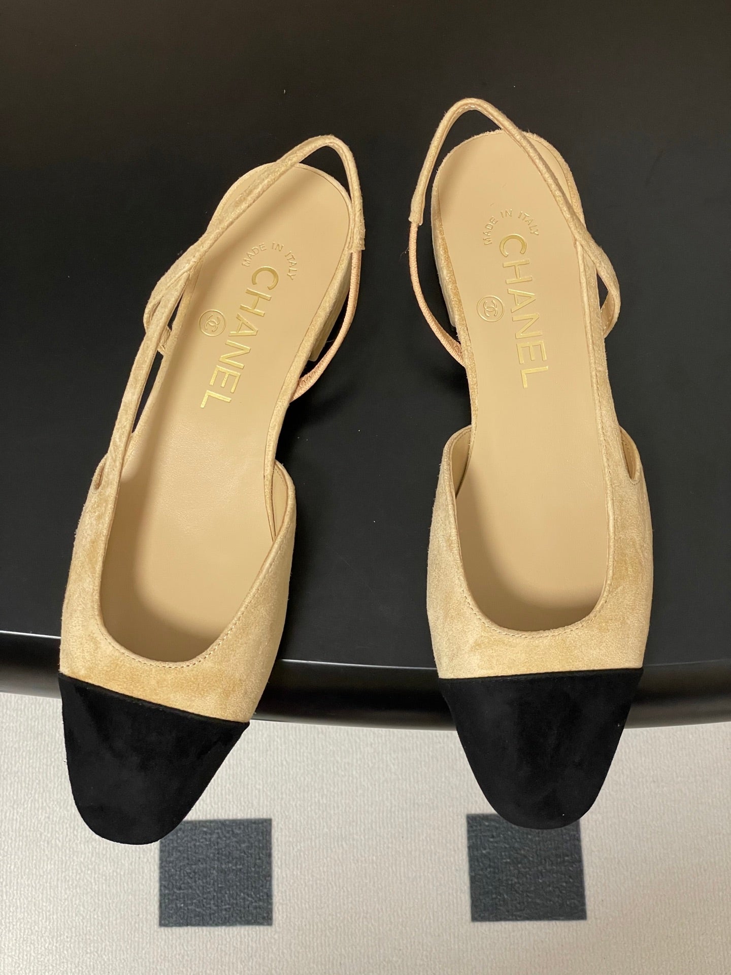 CC 25 SlingBack Flat 20mm Beige Black Suede 393995