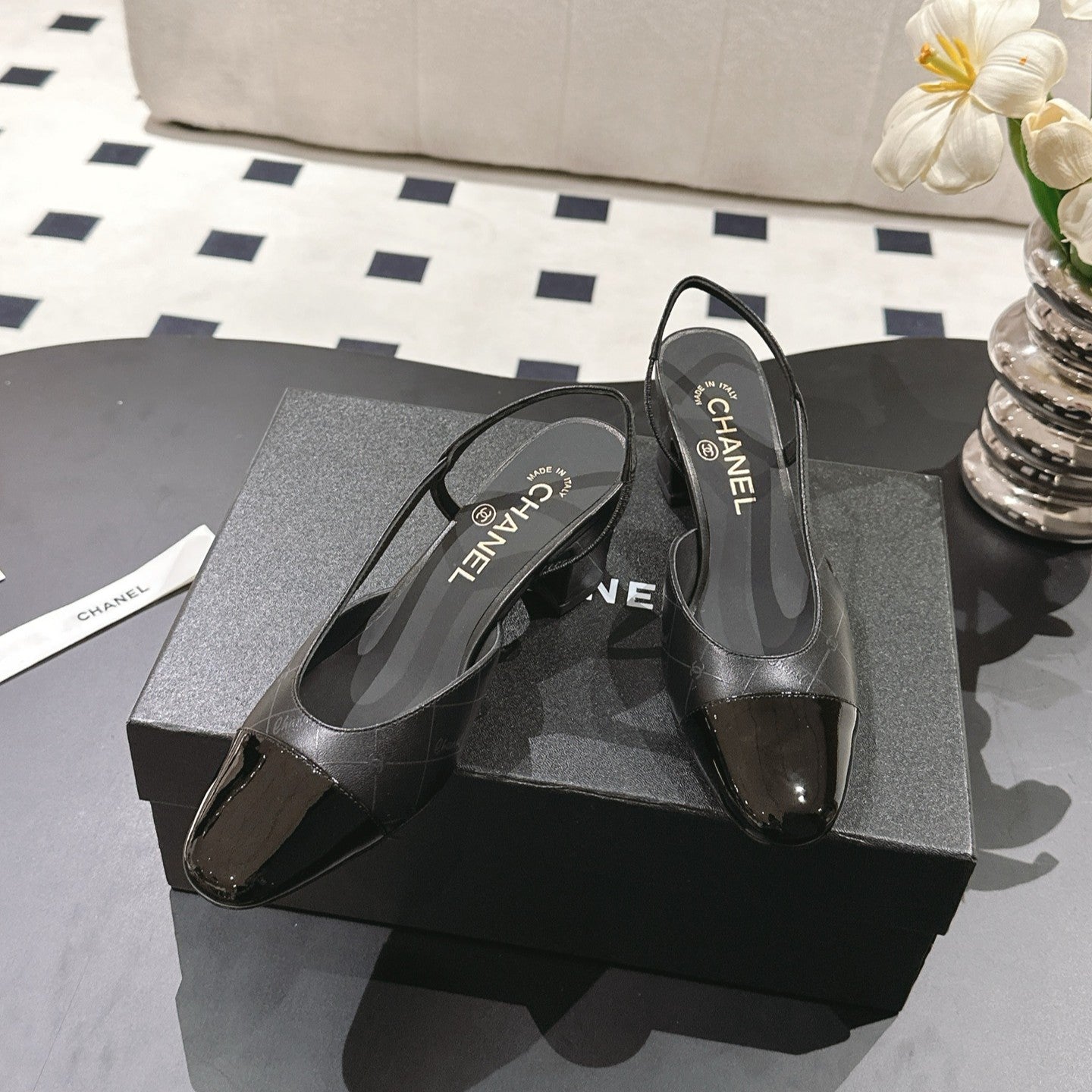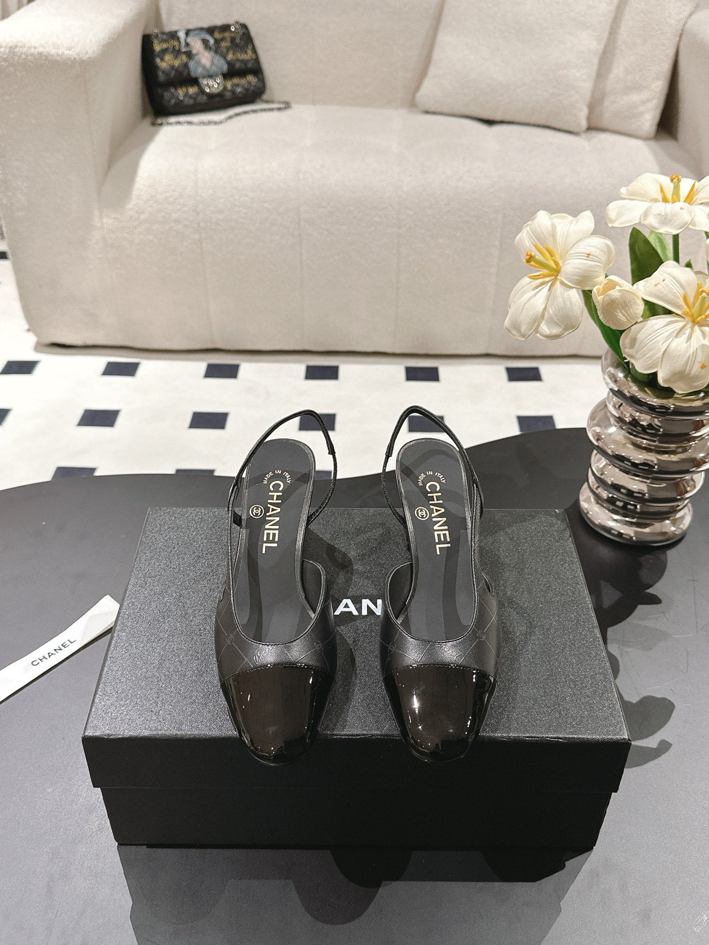cc 25c slingback 55mm cross line pattern black lambskin 237494